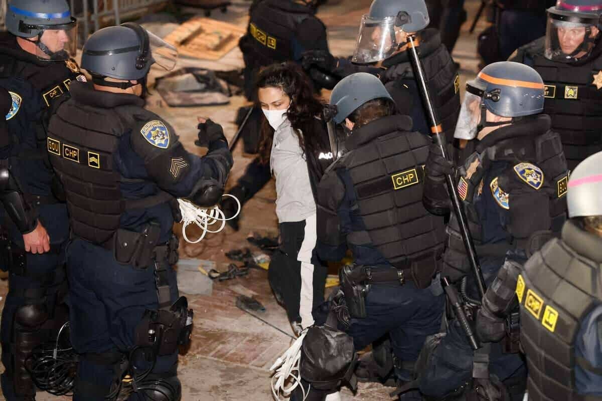 À UCLA, des dizaines de manifestants ont été interpellés un par un, menottés puis escortés à l'issue d'un face à face tendu avec les policiers, rapporte un journaliste de l'AFP sur les lieux.