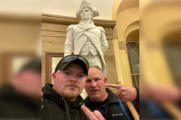 Les policiers Jacob Fracker et Thomas Robertson n’étaient pas en fonction lorsqu’ils ont été photographiés debout devant une statue à l'intérieur du siège du congrès.