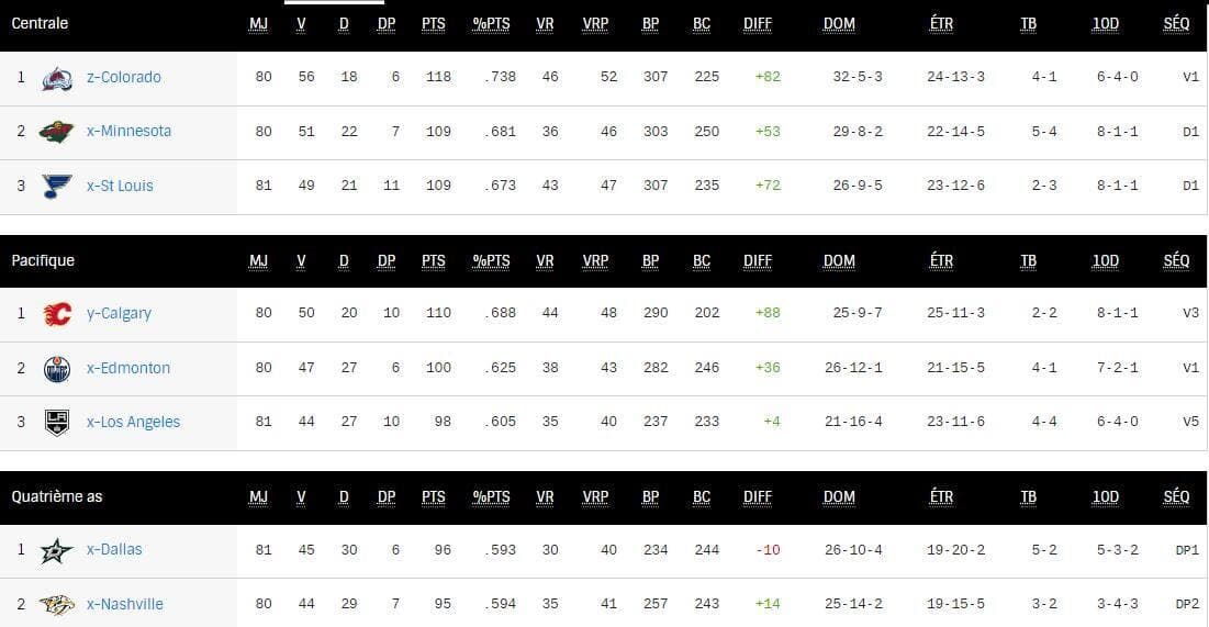 Voici les huit équipes qui participeront aux séries dans l’Ouest.