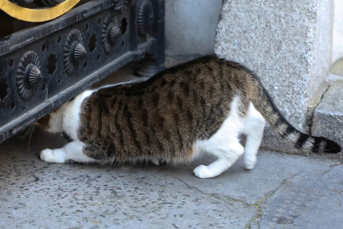 Le chat qui se dit Chef Souris du cabinet est souvent vu à l’extérieur du 10 Downing Street où il semble prendre la vie très relaxe, posant souvent pour les photographes.