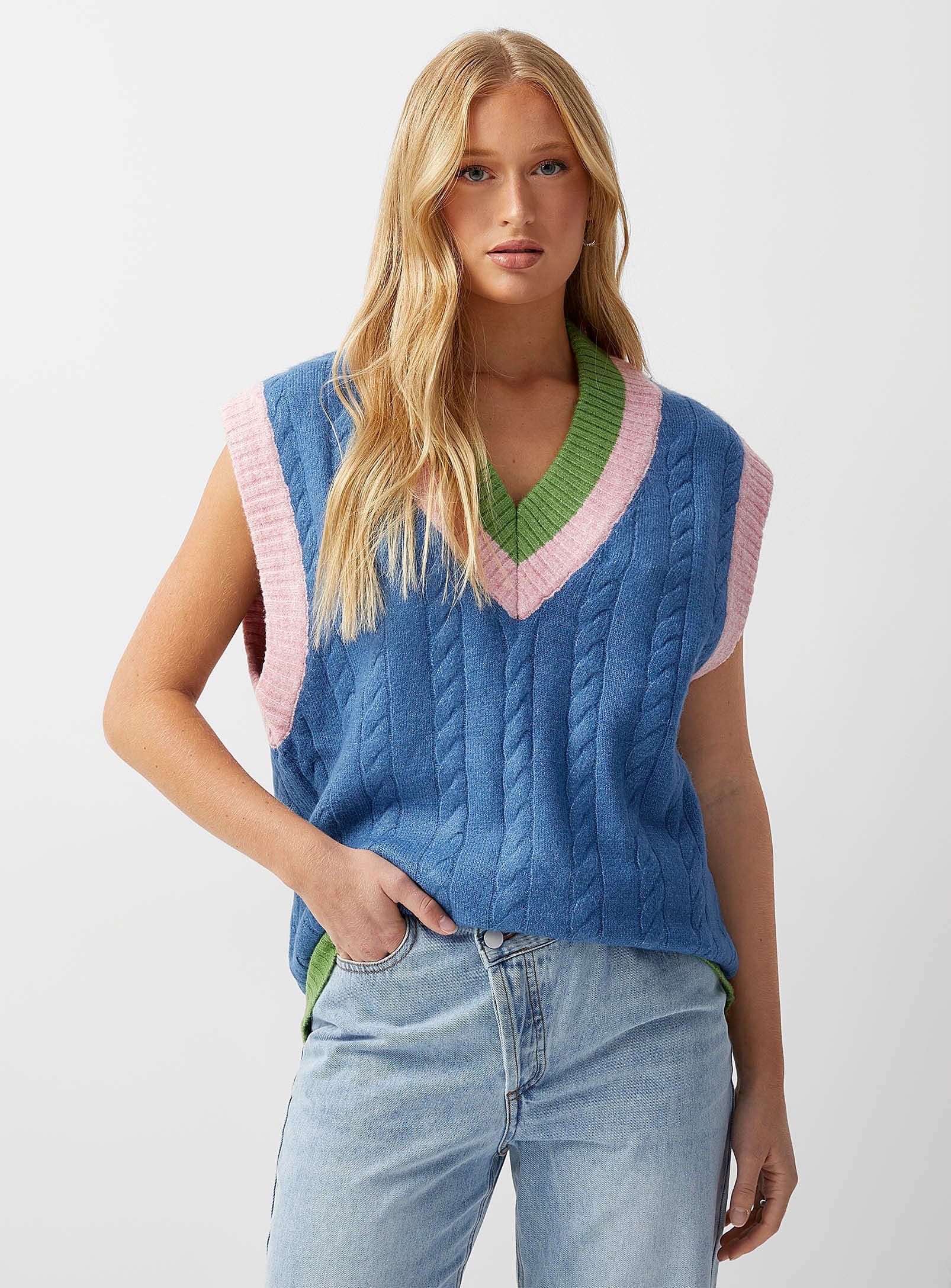 1. Pull sans manche coloré Frnch chez Simons - 137$