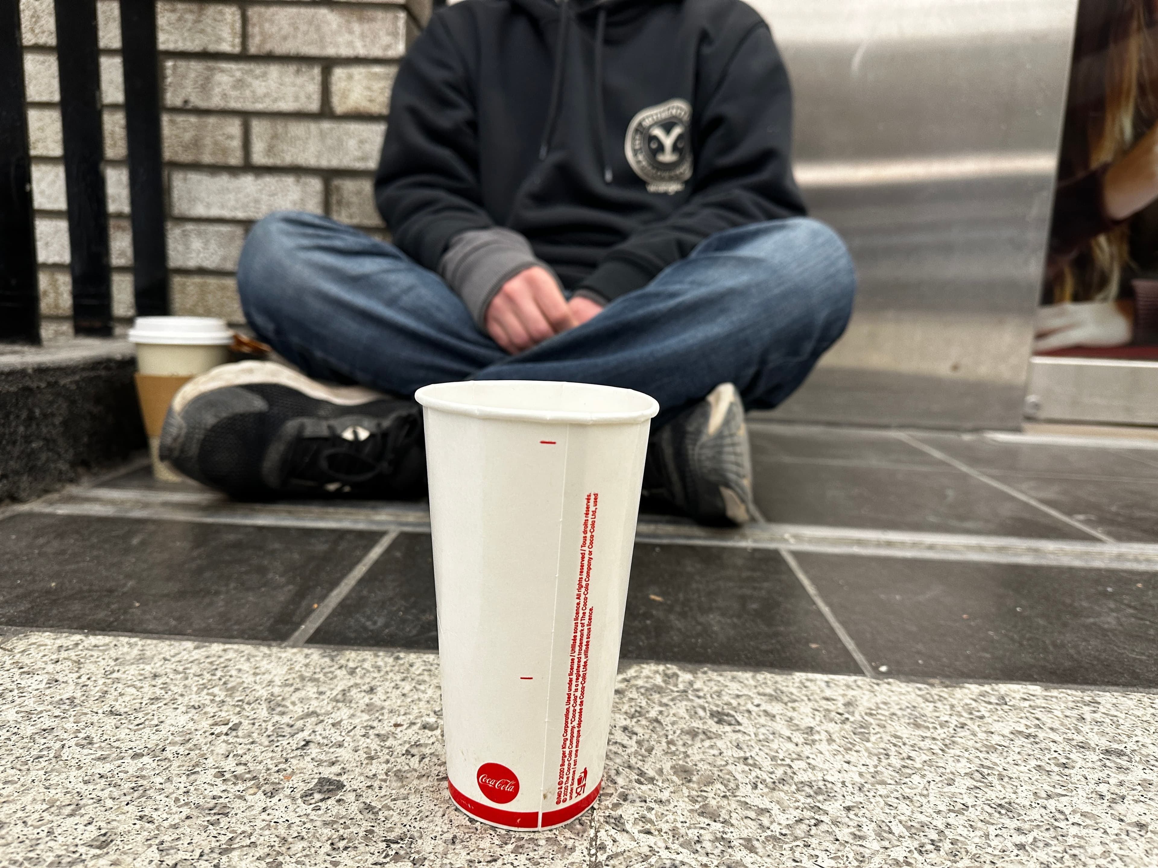 S’il obtient 20$ des passants, il considère que c’était une bonne journée. Le jeune homme s’assoie habituellement près des bornes de la STM avec, devant lui, un gobelet en carton.