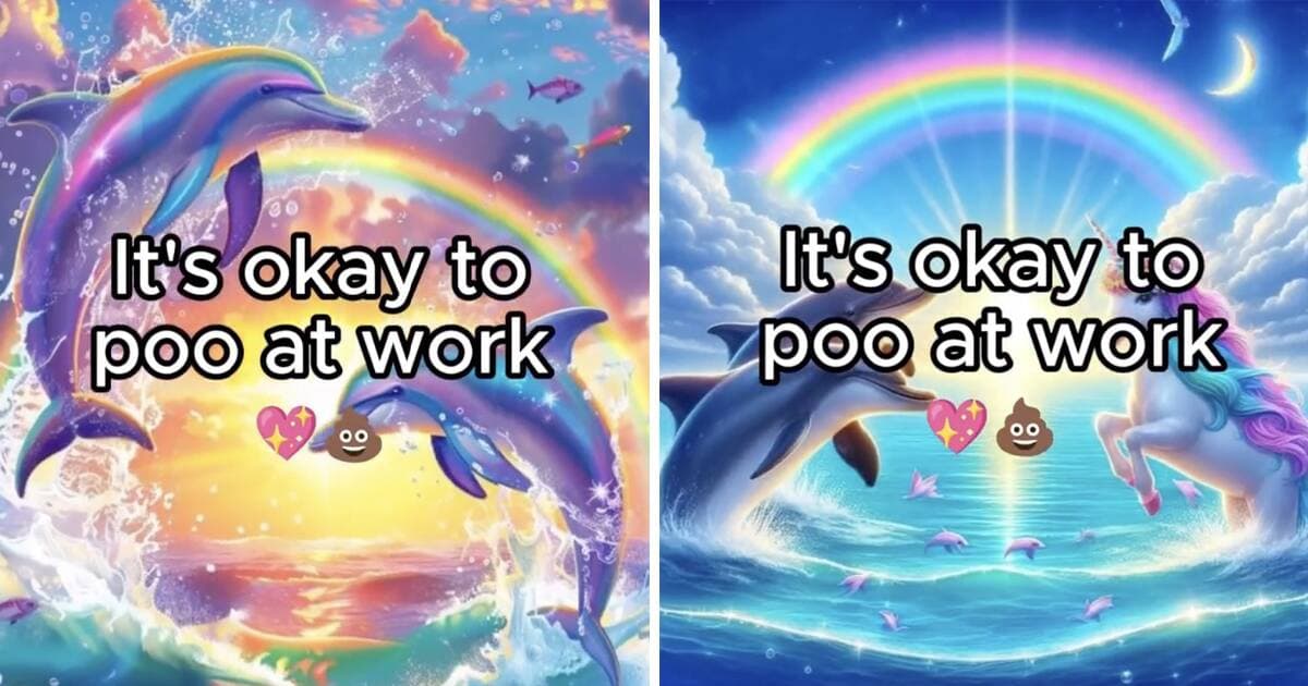 L’initiative du ministère de la Santé du Queensland, en Australie, lancée sur Instagram, se présente sous forme d’images de dauphins kitsch, d’arcs-en-ciel et de licornes accompagnées d’un message qui prête à sourire: «C’est normal de faire caca au travail».