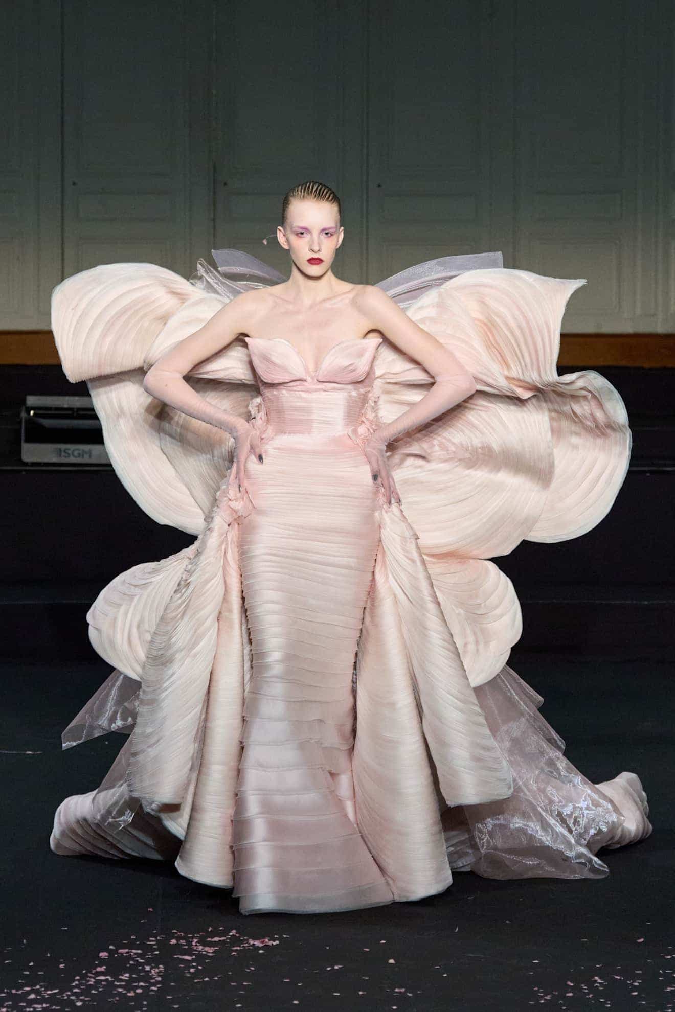Si la teinte ballerine, plus précisément, fait autant parler, c’est aussi grâce à une tendance plus large qui s’inspire directement de l’univers du ballet. Les boucles, le tulle, le satin, les drapés et les silhouettes en sablier, qui marquent la taille et ajoutent du volume sur les hanches, sont des éléments omniprésents dans les collections de cet automne.