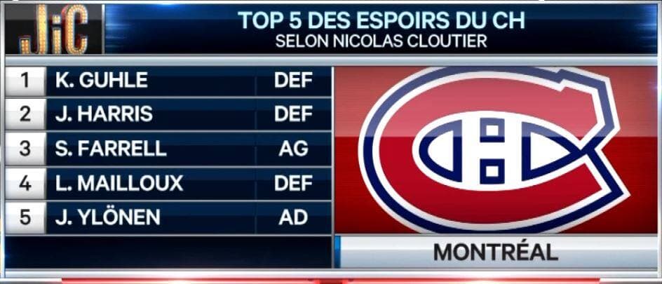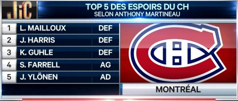 Le journaliste a ensuite expliqué ses autres choix. Dans l’ordre, Harris, Farrell, Mailloux et Ylonen ont meublé les autres positions de son classement.