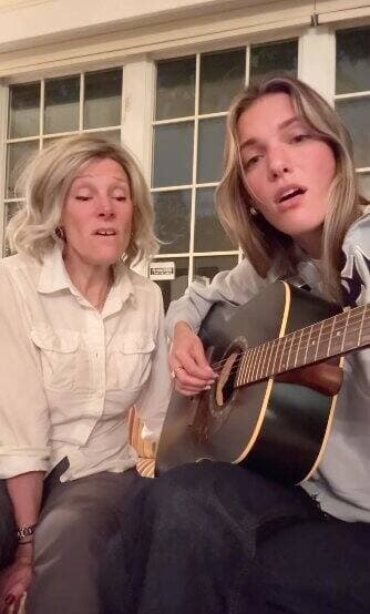 «Bonne fête nationale! Ma maman et moi avons enregistré hier soir cette petite vidéo d’une de nos chansons préférées, 'Sur Mon Épaule' des @lescowboysfringants.»