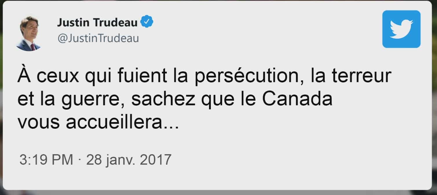 Selon ses dires, le tweet de Trudeau a sauvé sa vie et celle de bien d’autres demandeurs d’asile.