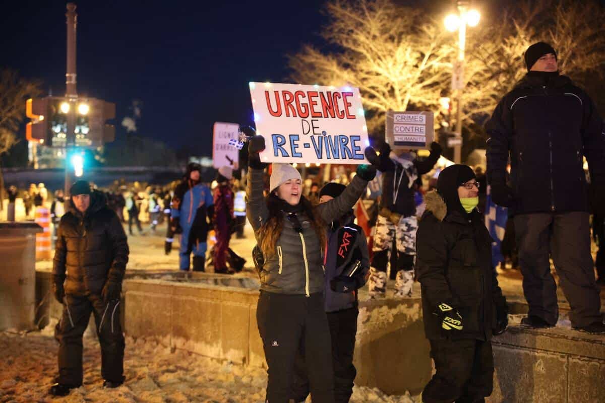« Ça va être le temps de reprendre les libertés qu’ils nous ont enlevé », a ensuite lancé Kévin Bilodeau, organisateur du convoi qui partait de la Beauce, samedi matin. Le coordonnateur du Parti populaire du Canada (PPC) à Québec, Daniel Brisson, a quant à lui nié la crise sanitaire.