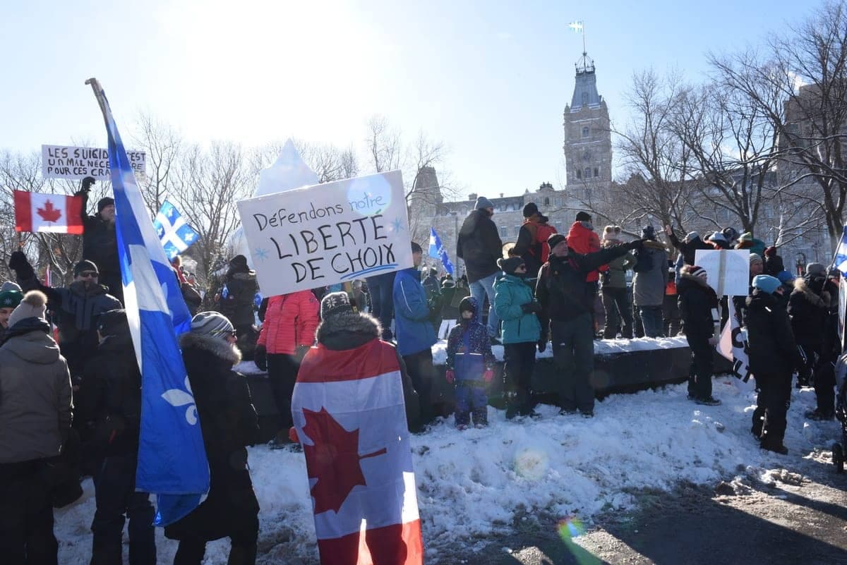 « [On veut] faire entendre à Legault et Trudeau, qui est caché dans son trou, qu’on a assez! C’est pas une crise sanitaire, c’est une crise politique de contrôle de la population! », a-t-il affirmé sans aucun égard pour les quelque 13 500 décès liés à la COVID-19 depuis le début de la pandémie.