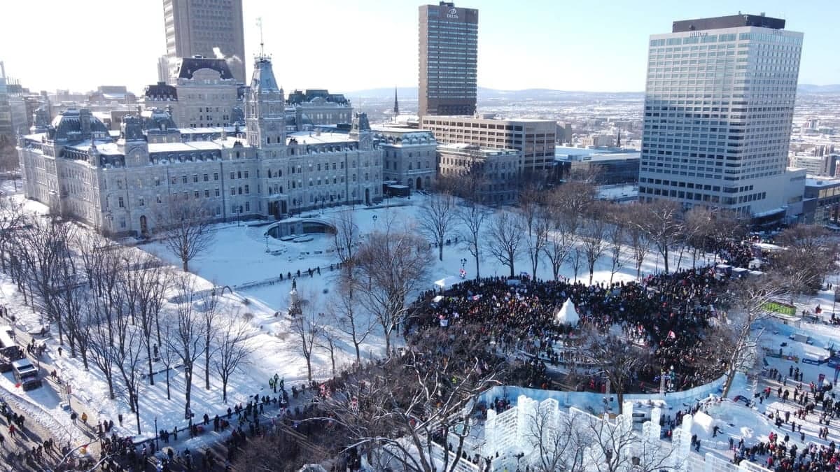 À VOIR | L'hélicoptère TVA a survolé le coeur de Québec, où des milliers de manifestants réclament un relâchement des mesures sanitaires dans la province.