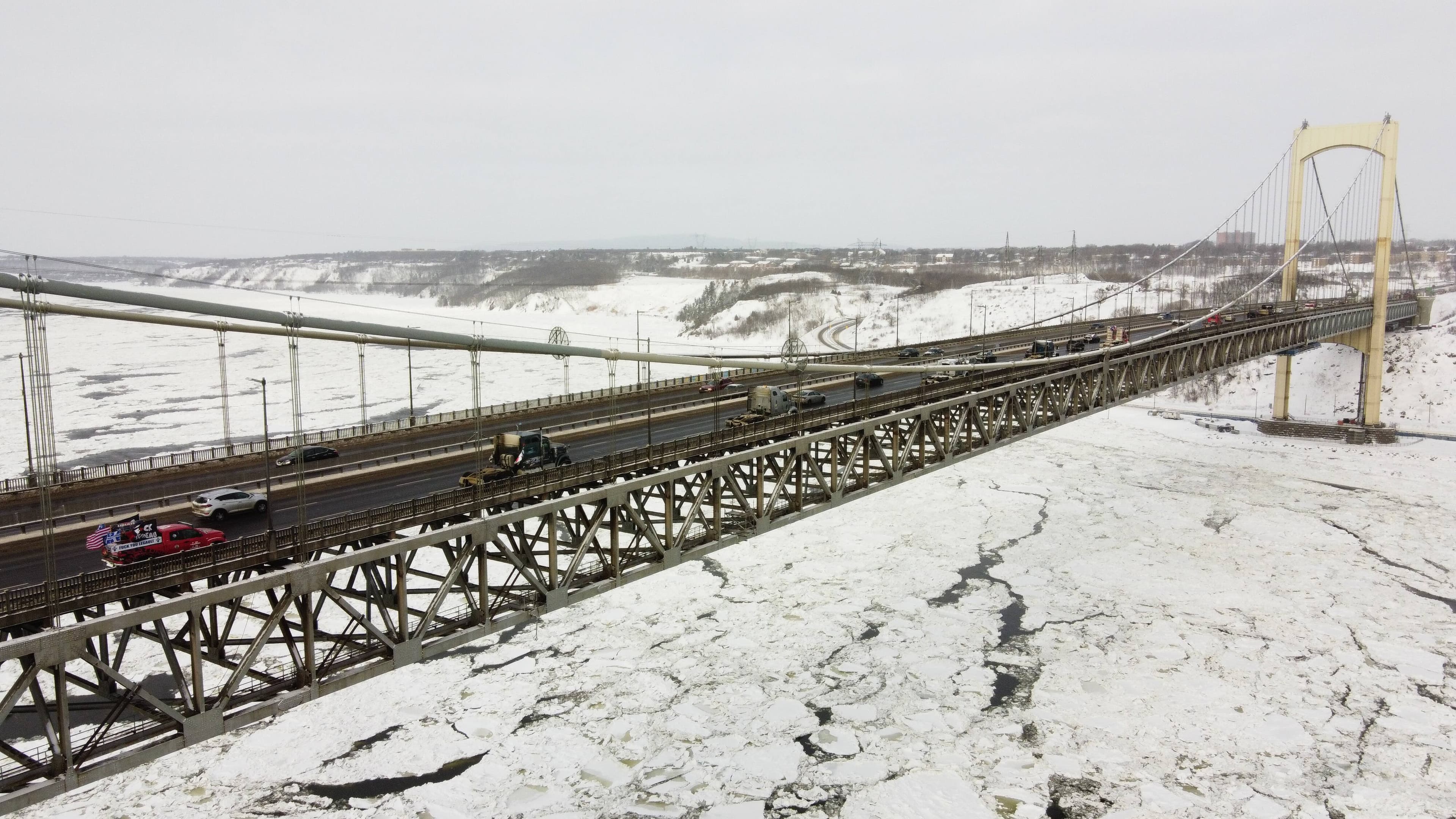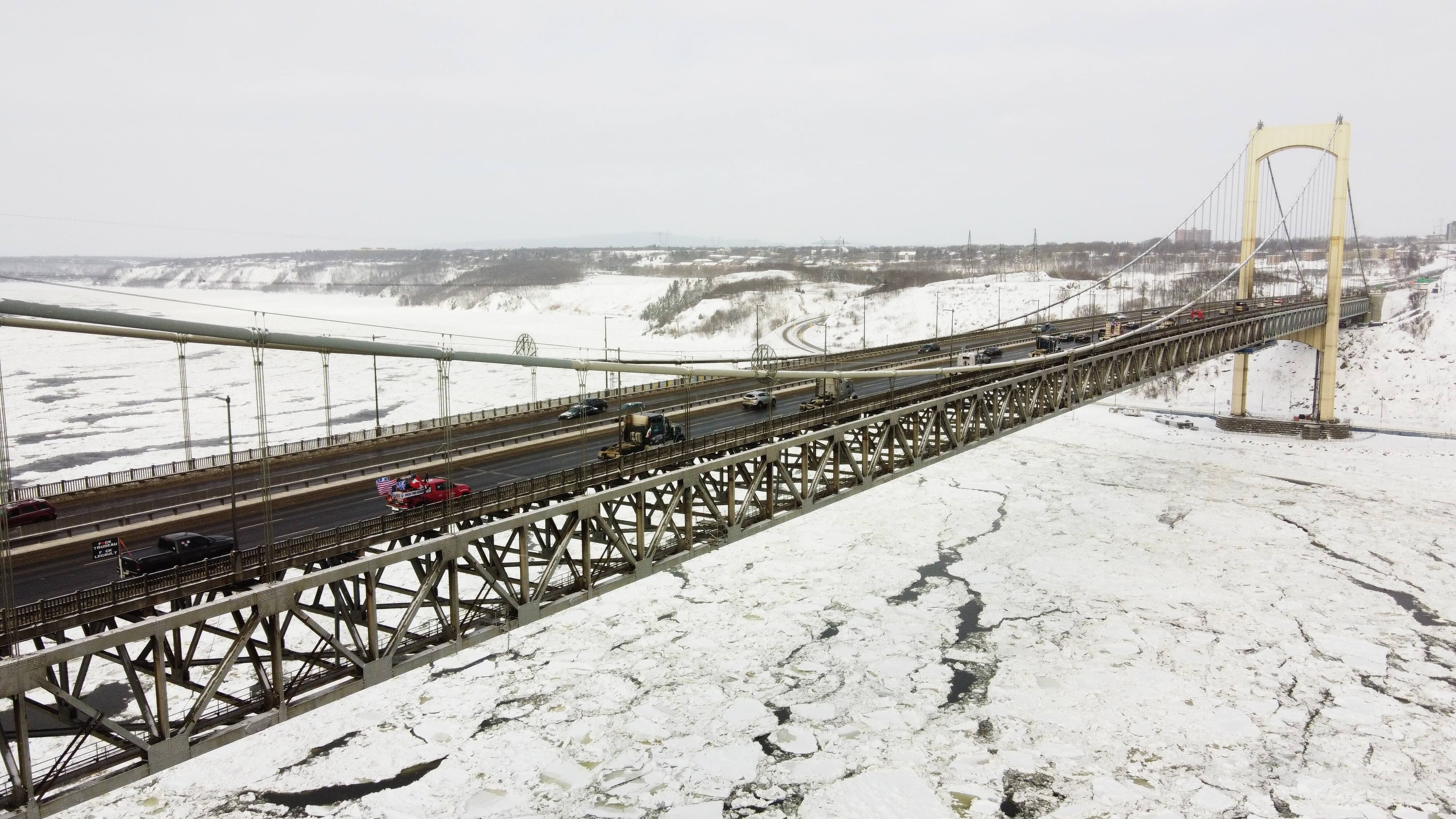 PHOTOS | Le convoi en provenance de la Beauce fait son entrée à Québec sur le pont Pierre-Laporte.
