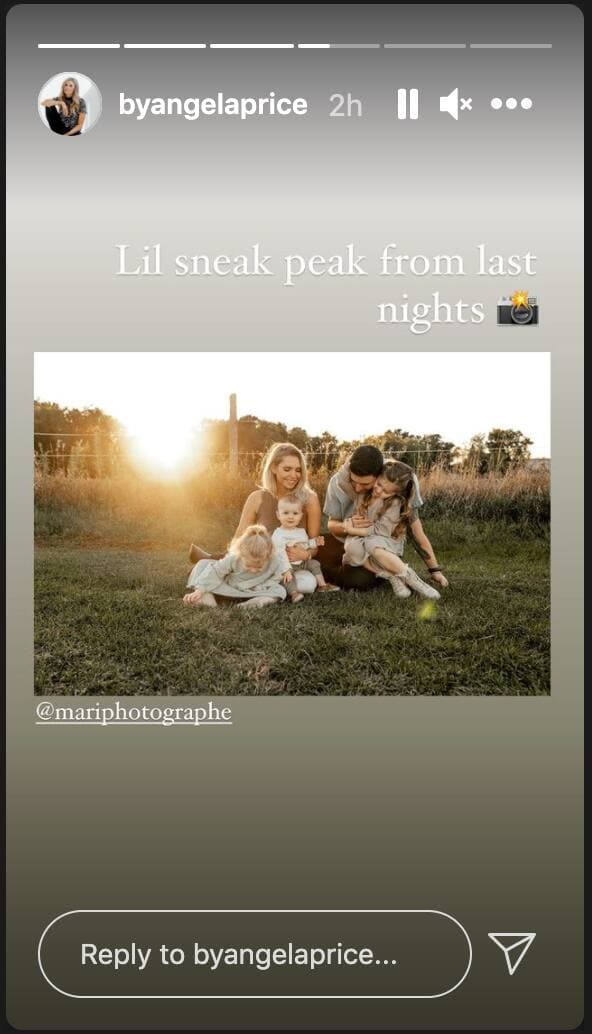 Angela a organisé une nouvelle séance hier soir avec la photographe réputée Marï Photographe, qu’elle qualifie de sa «photographe préférée». Elle a choisi une fin de journée parfaite — le ciel affichait de belles teintes rosées au coucher du soleil — et un lieu enchanteur pour que Carey, elle, ainsi que leurs trois enfants, Liv, Millie et Lincoln, puissent prendre la pose.
