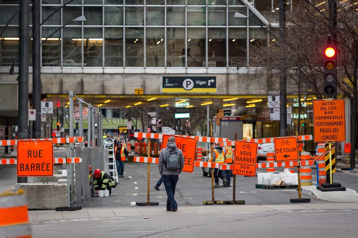 Plus loin, l’avenue Viger était complètement fermée entre les intersections des rues Jeanne-Mance et De Bleury, situées devant des entrées du Palais des congrès.