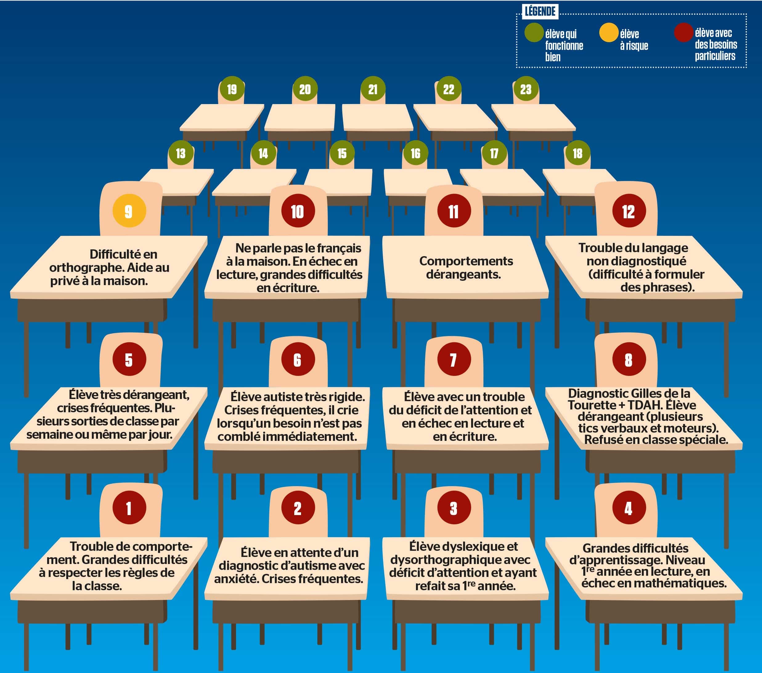Il y a deux ans, Le Journal rapportait que dans plus de 200 classes régulières, au moins un élève sur deux était en difficulté et avait besoin de mesures particulières pour réussir.