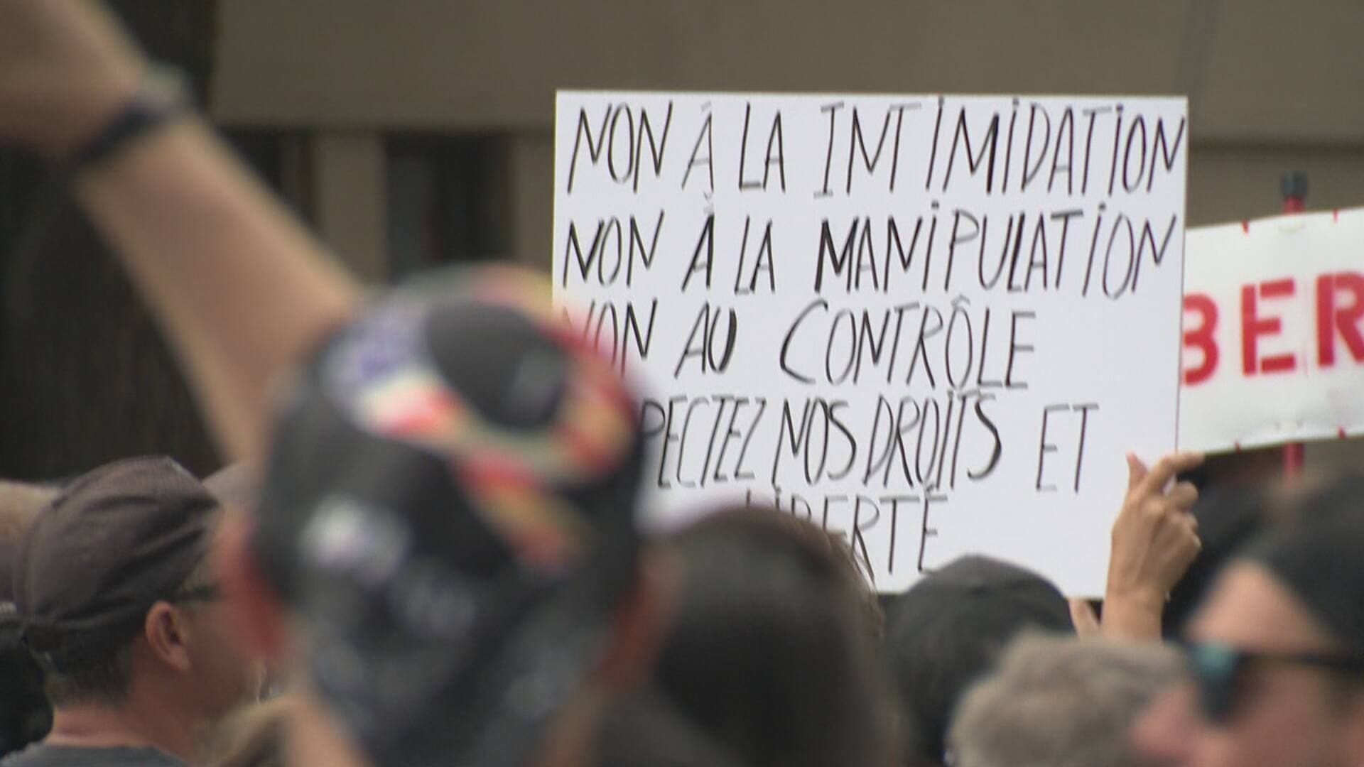 D’autres participants, plus nuancés, réclamaient un débat public sur cette mesure qui empêche l’accès à certains lieux — bars, restaurants, gyms — aux gens non adéquatement vaccinés.