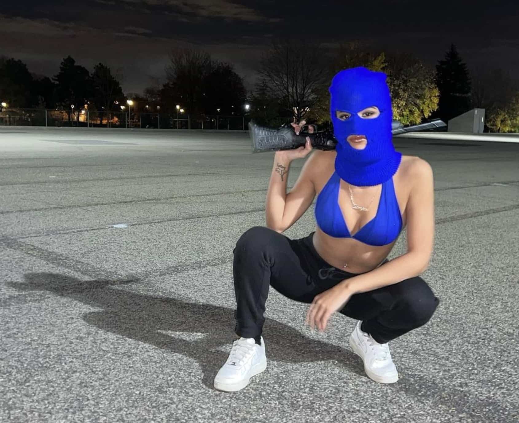 La jeune femme tient l’arme sur quatre des cinq clichés mis en ligne ce soir-là.