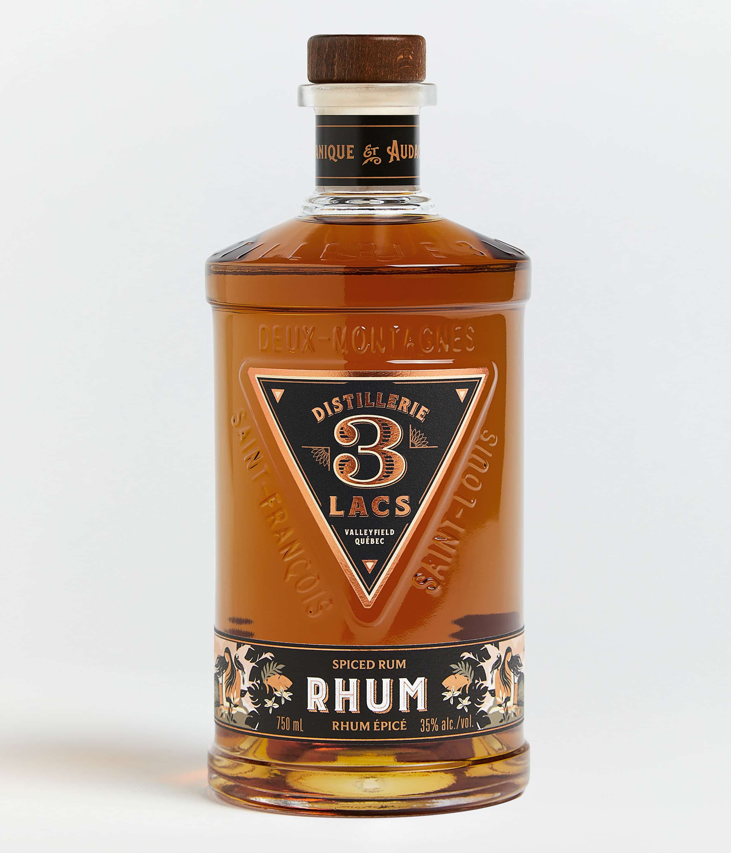Il s’agit du tout premier rhum de la Distillerie 3 Lacs (35% alc./vol.): il se veut exotique et juste assez épicé, avec ses arômes de vanille et d’écorce d’orange. Un mélange audacieux au caractère envoûtant, qui viendra pimenter vos cocktails les plus classiques, comme les plus «flyés». Un incontournable pour votre bar du temps des Fêtes!