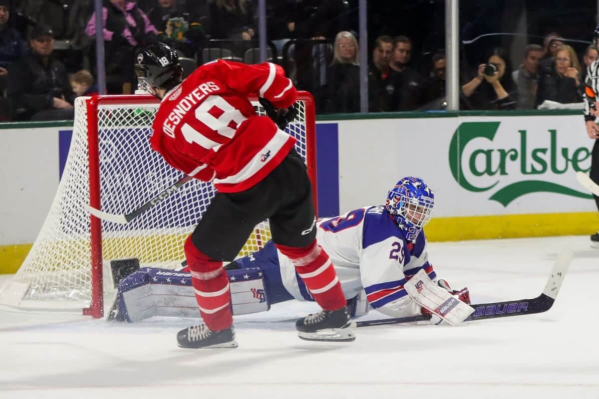 Le prodige américain James Hagens, qui vient de remporter l’or au CMJ, suit au deuxième rang. Le joueur exceptionnel de la Ligue de l’Ontario (OHL) Michael Misa complète le top 3.