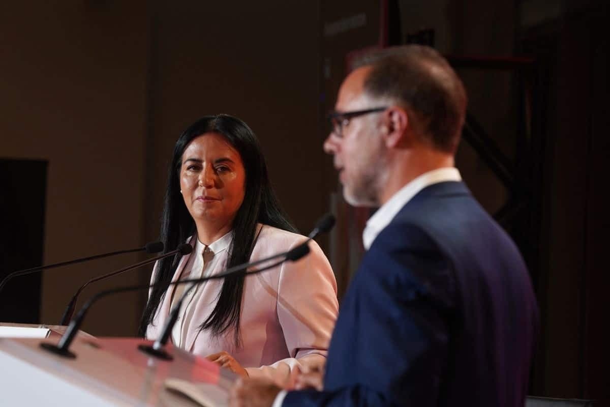 Soraya Martinez Ferrada et le chef de Projet Montréal, Luc Rabouin, croisaient le fer lors d’un débat organisé par la Chambre de commerce du Montréal métropolitain.