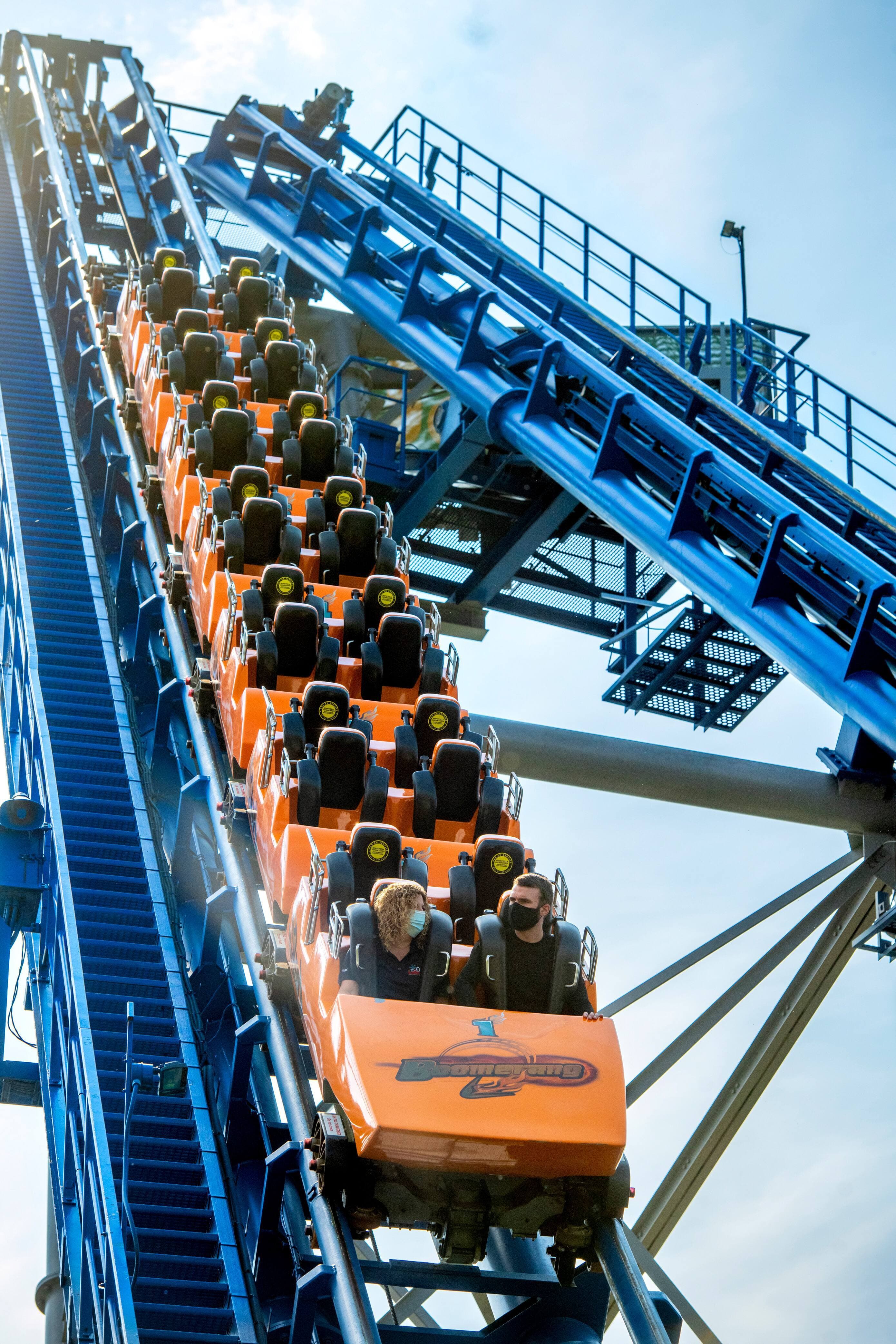 Le premier manège que Sophie Emond a opéré en 1990, lorsqu’elle avait 17 ans, c’était le Boomerang. Il allait de soi que je commence l’entrevue dans cette montagne russe à deux boucles complètes où l’on file en vrombissant jusqu’à l’extrémité opposée du rail spiralé avant de revenir (à reculons !) à son point de départ.