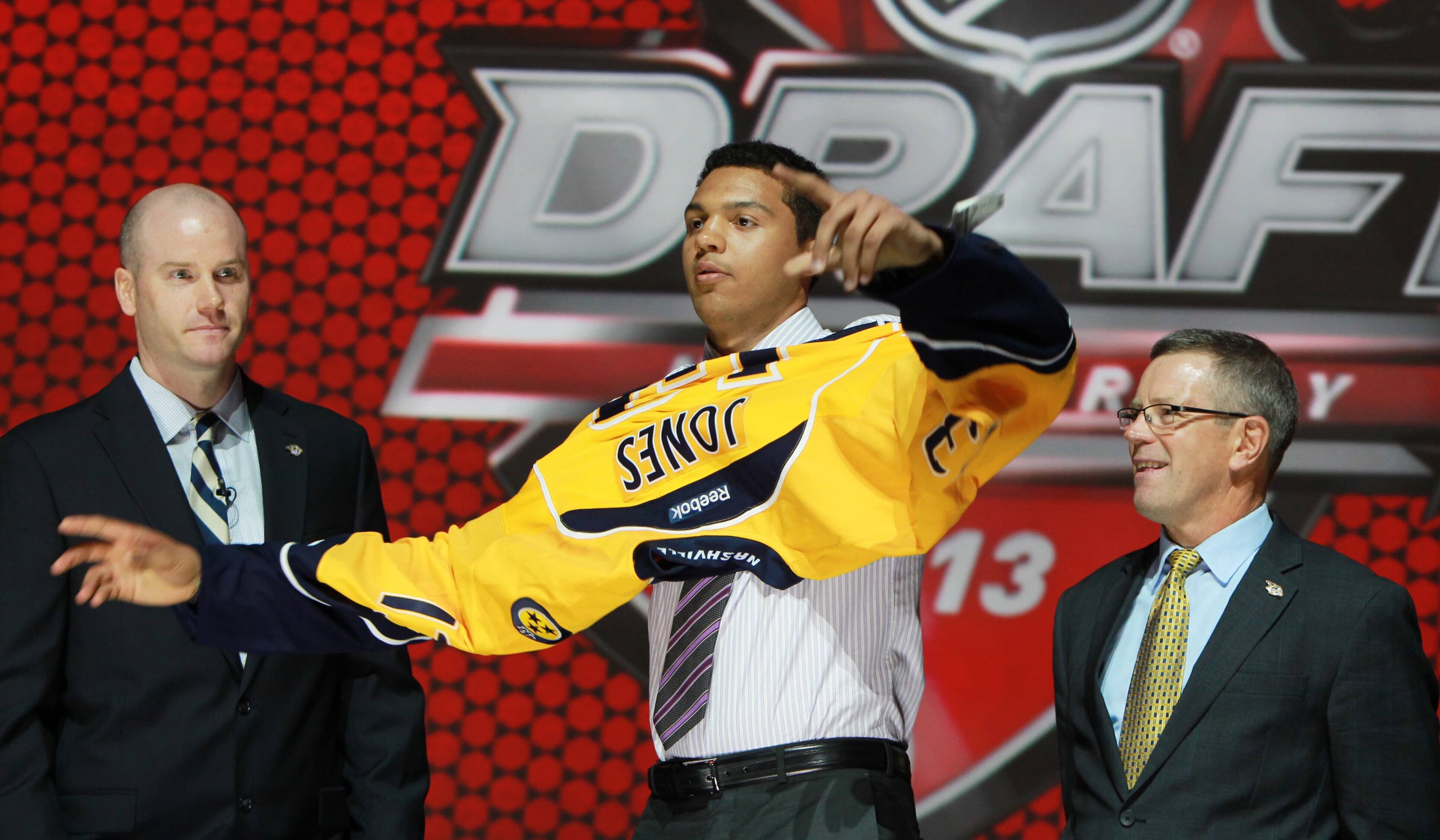 Jones a poussé un soupir de soulagement immédiatement après lorsque les Predators de Nashville l’ont invité sur la scène.
