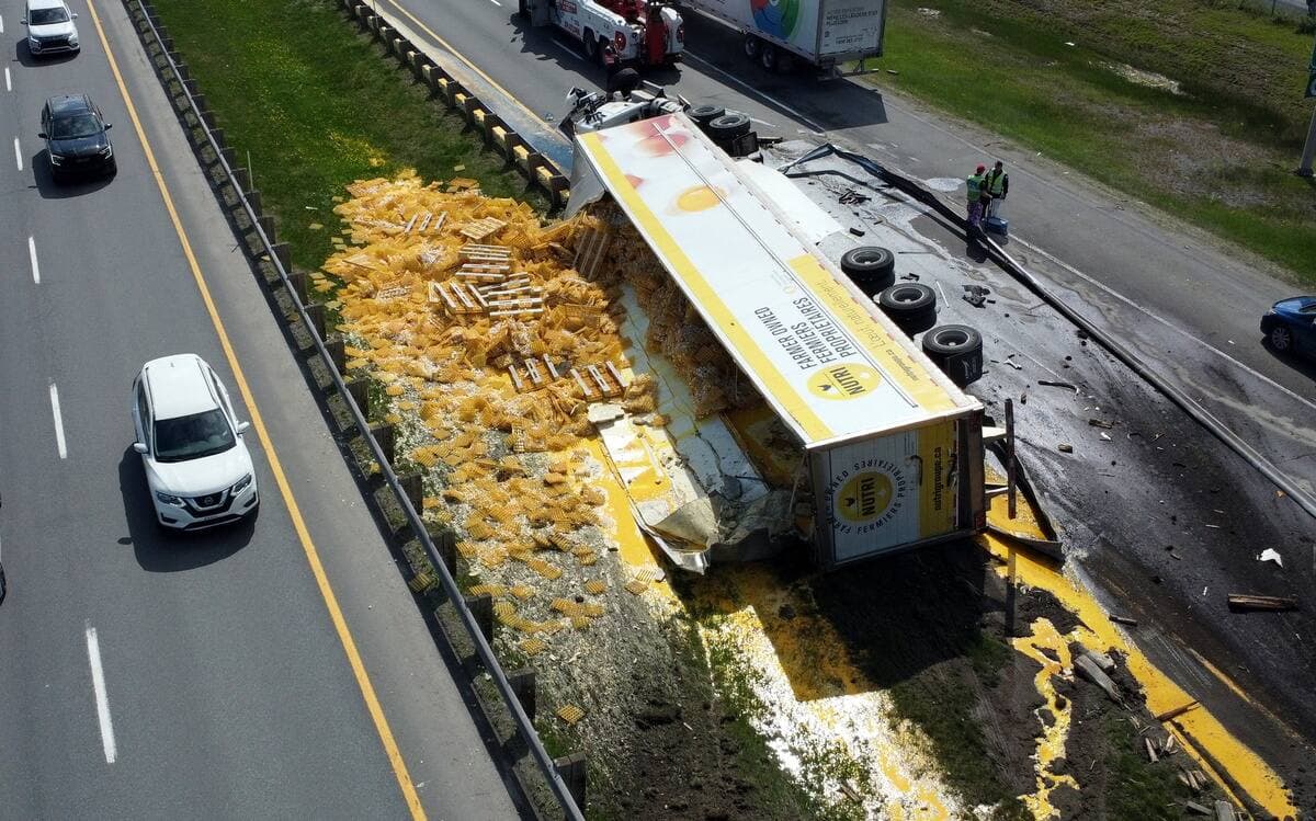 Drummondville: un camion rempli d’œufs cause une congestion monstre sur l’autoroute 20