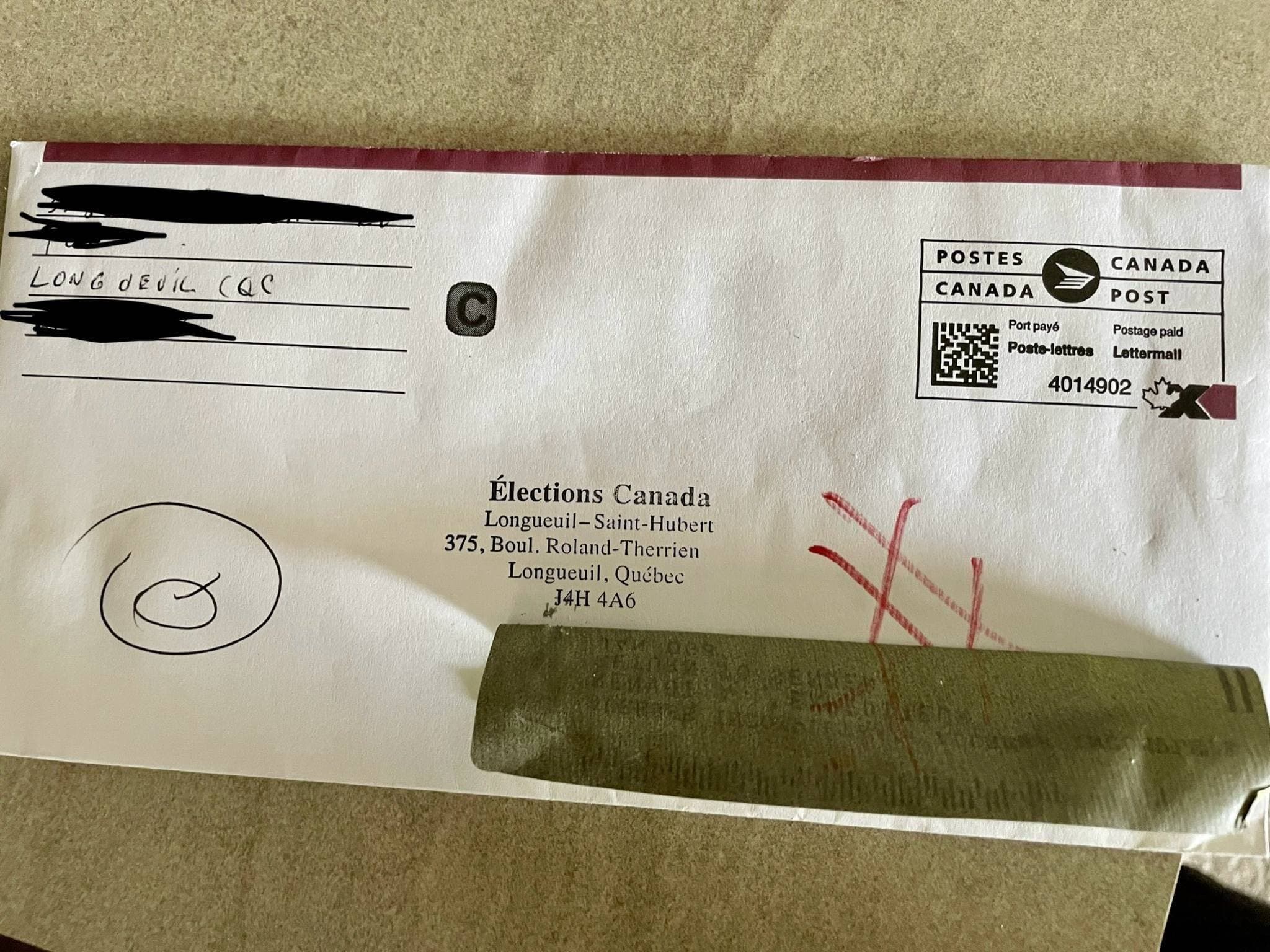 Son bulletin avait été expédié une semaine avant les élections, un délai normalement suffisant dans la même ville. Pareil à ce qu’avait vécu une résidente de Terrebonne, l’enveloppe fournie par Élections Canada pour expédier le bulletin de vote ne portait pas l’adresse exacte.