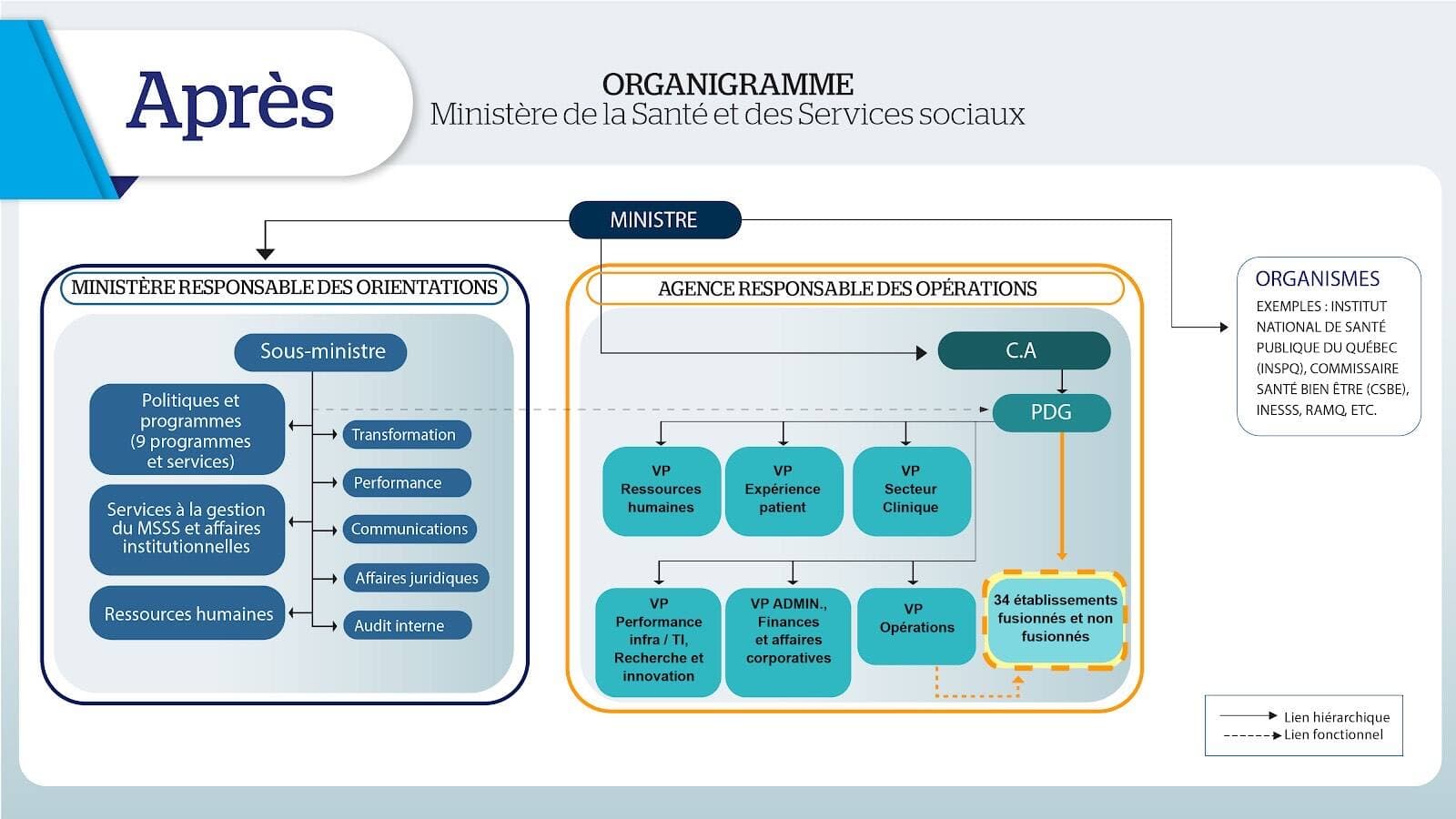 Santé Québec deviendra ainsi le lien entre le MSSS et les CISSS-CIUSSS, responsables de gérer les opérations localement.