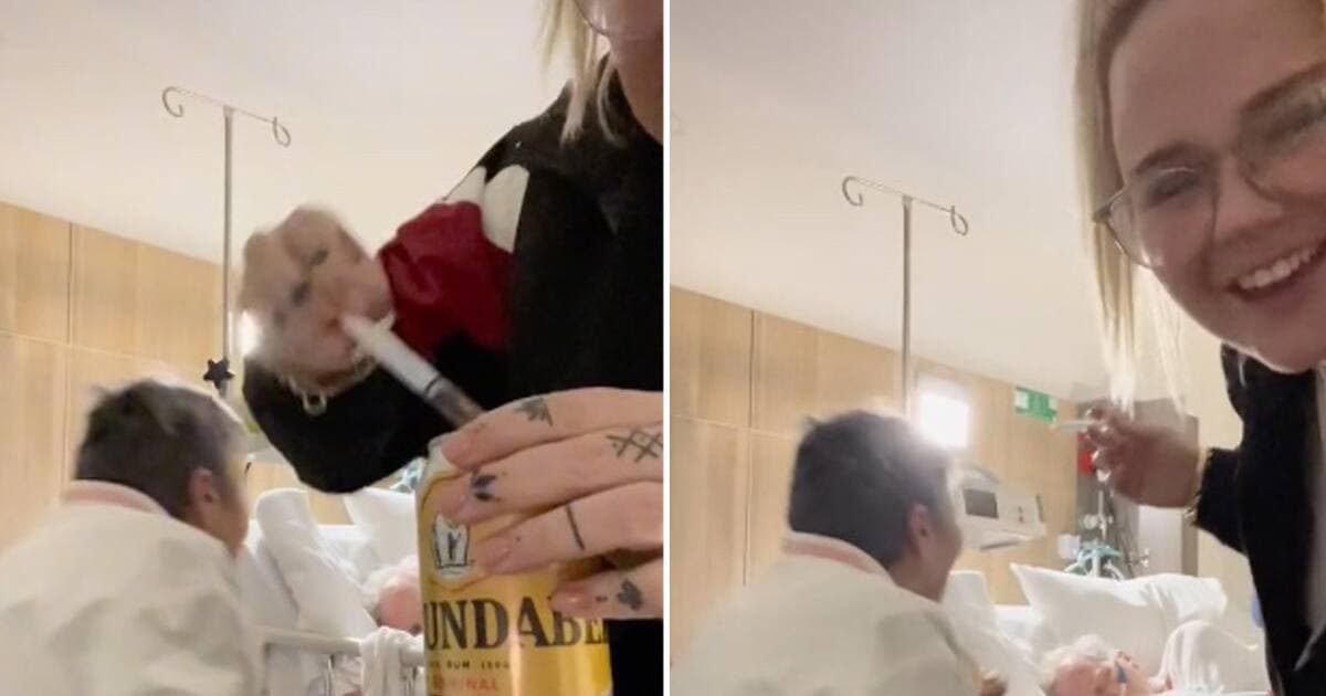 Alors que son père était hospitalisé en raison d’une longue maladie, elle a fait fi des règles en emmenant dans sa chambre une canette de Bunderberg, une marque de rhum & coke populaire au pays des kangourous.