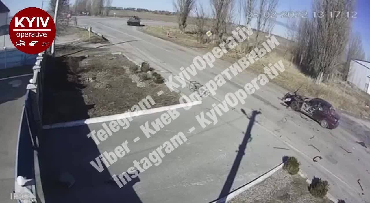 Une vidéo filmée par une caméra de surveillance en Ukraine montre le moment où un couple de personnes âgées circulant dans une voiture est tué par un char d’assaut russe, alors que Vladimir Poutine soutient que les civils seront épargnés par le conflit.