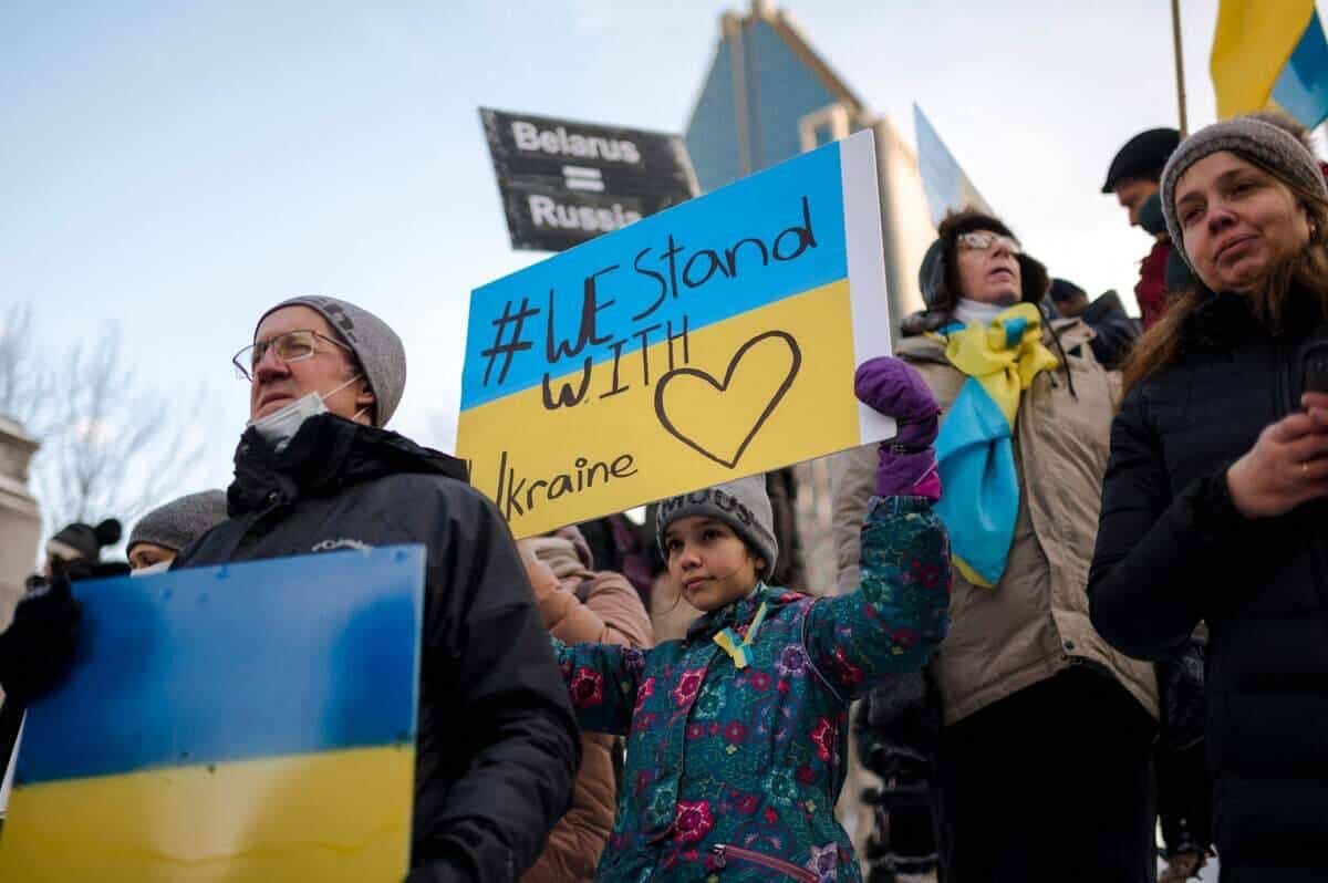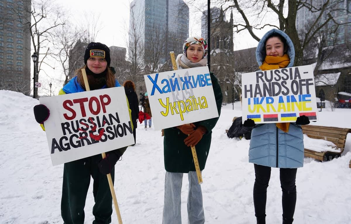 Environ un millier de manifestants ont réclamé, dimanche après-midi, que la Russie mette fin à son invasion de l’Ukraine lors d’un rassemblement organisé sur la Place du Canada, à Montréal.