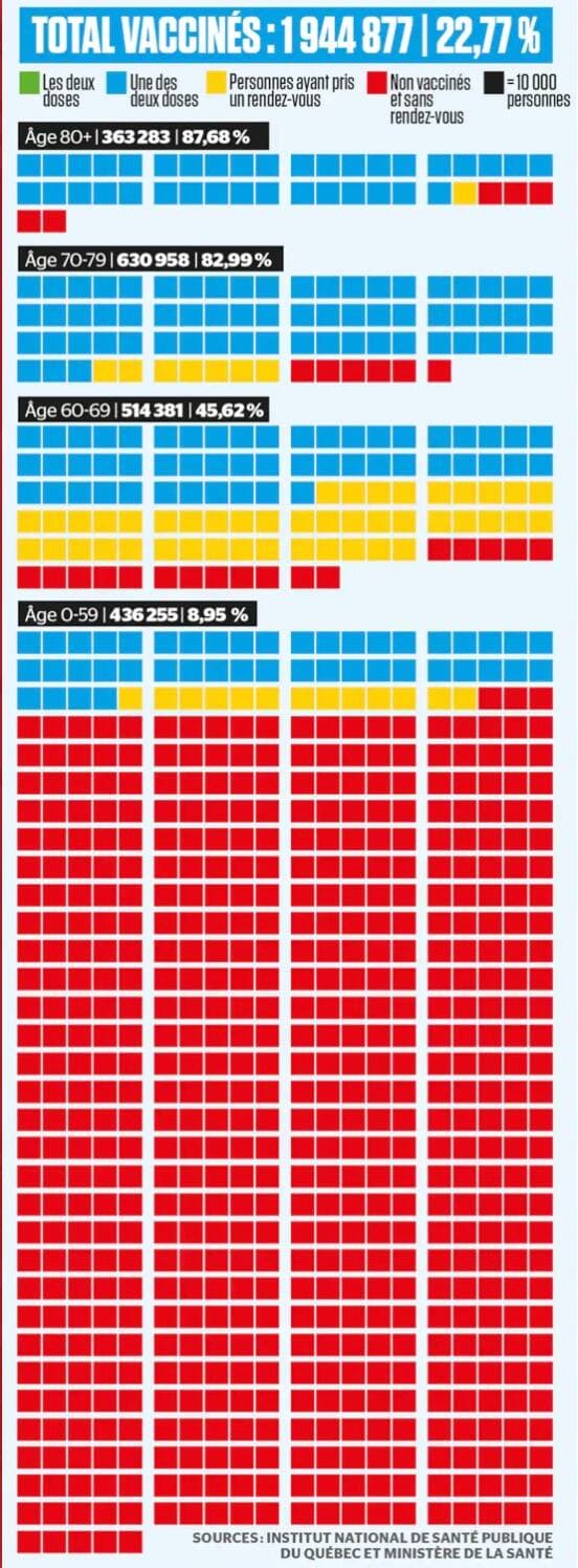 2 millions de doses de vaccins ont été administrées au Québec. C’est 1 Québécois sur 4 qui a reçu sa 1ère dose!