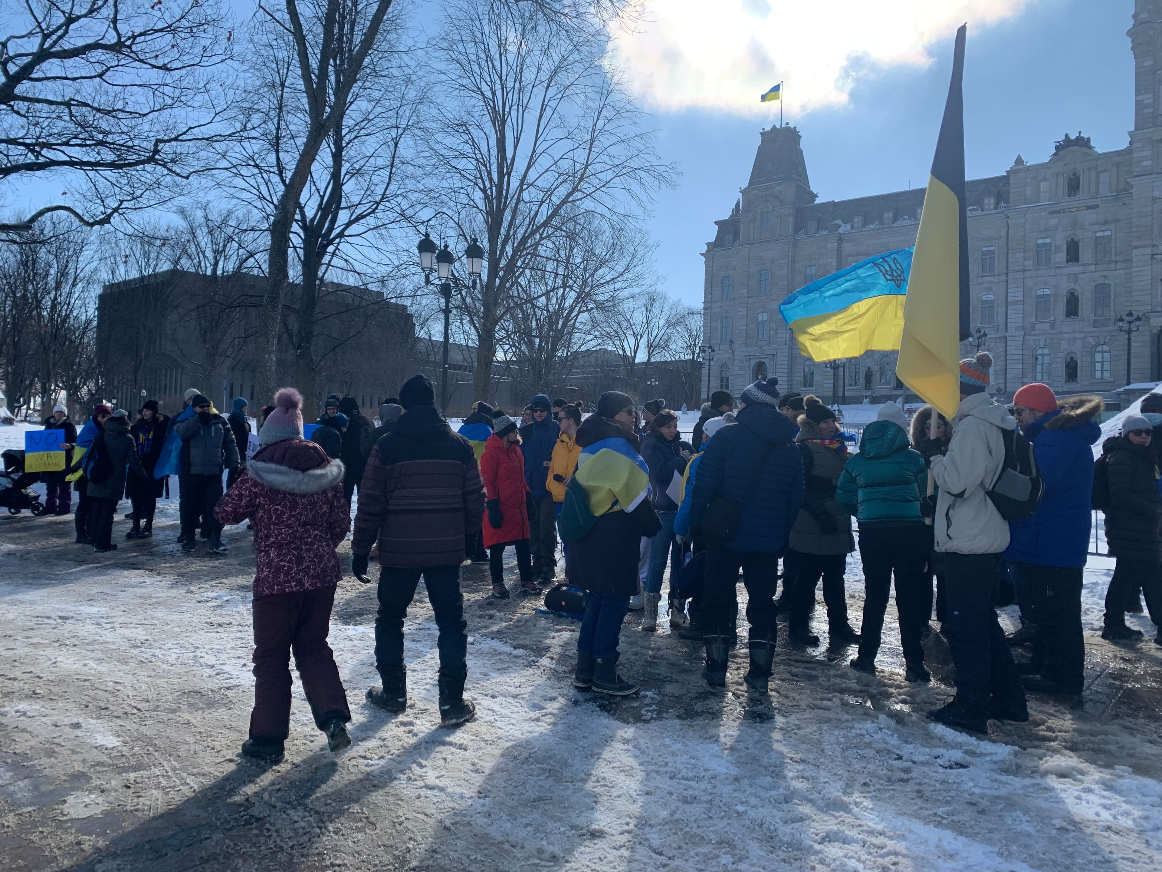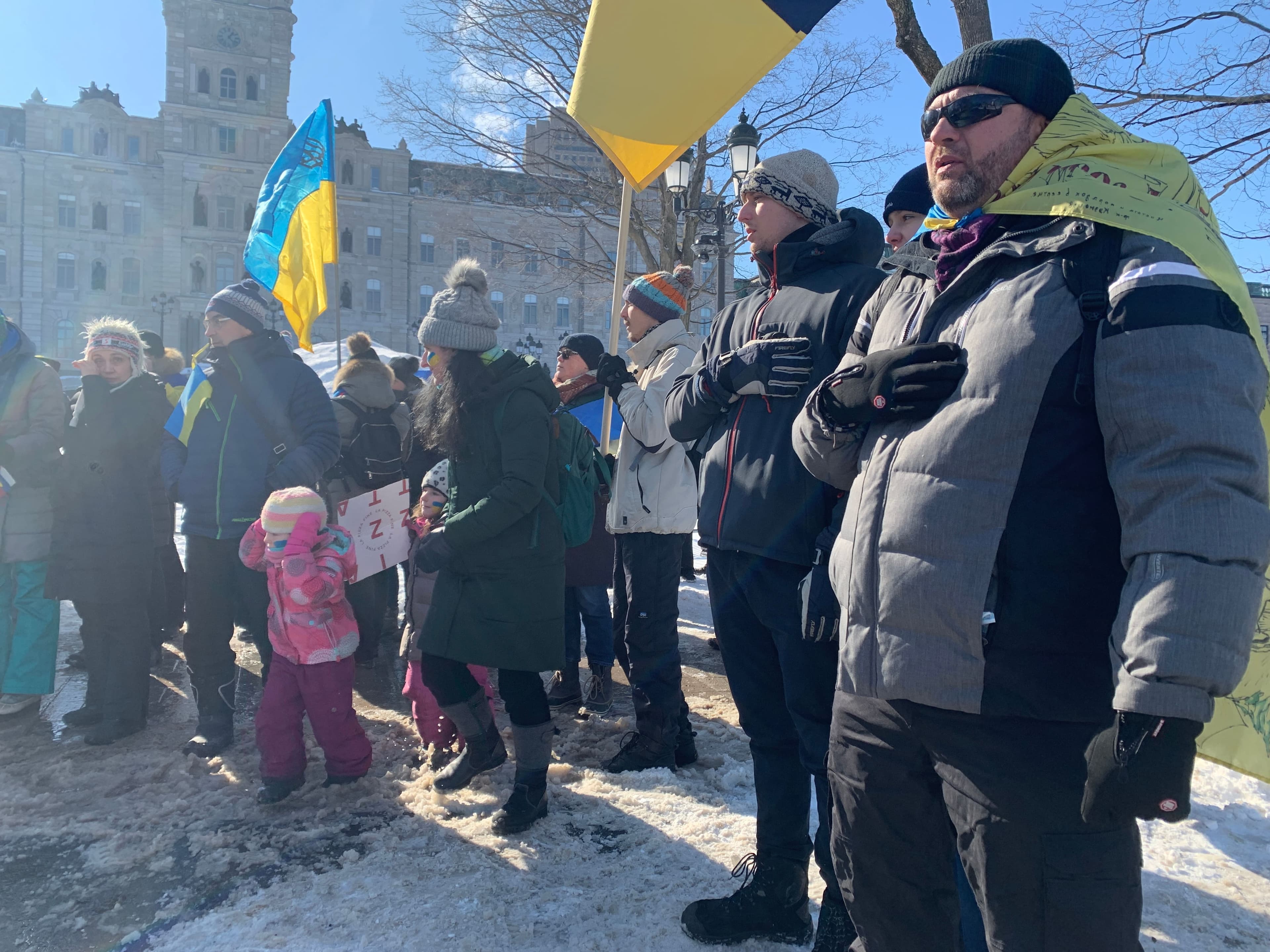 Une centaine de Québécois d’origine russe ou ukrainienne se sont réunis devant l’Assemblée nationale à Québec pour dénoncer ce qu’ils qualifient « d’agression gratuite ».