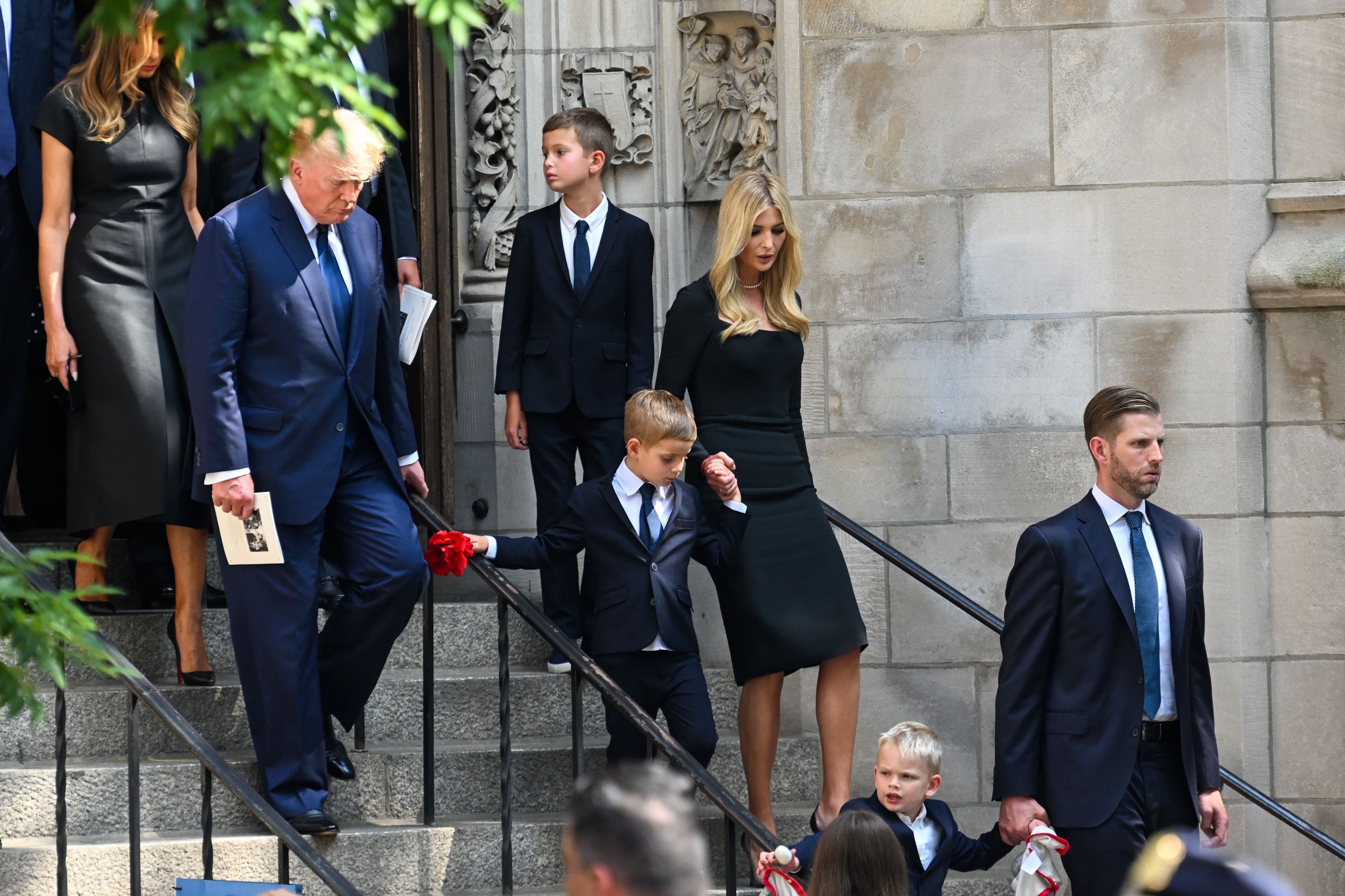 Donald Jr, Ivanka et Eric Trump, les trois enfants que le milliardaire a eus avec Ivana, étaient réunis avec l'ancienne première dame des États-Unis et actuelle épouse du républicain, Melania, pour un service funèbre à l'église St. Vincent Ferrer, dans le quartier de l'Upper East Side, à Manhattan.