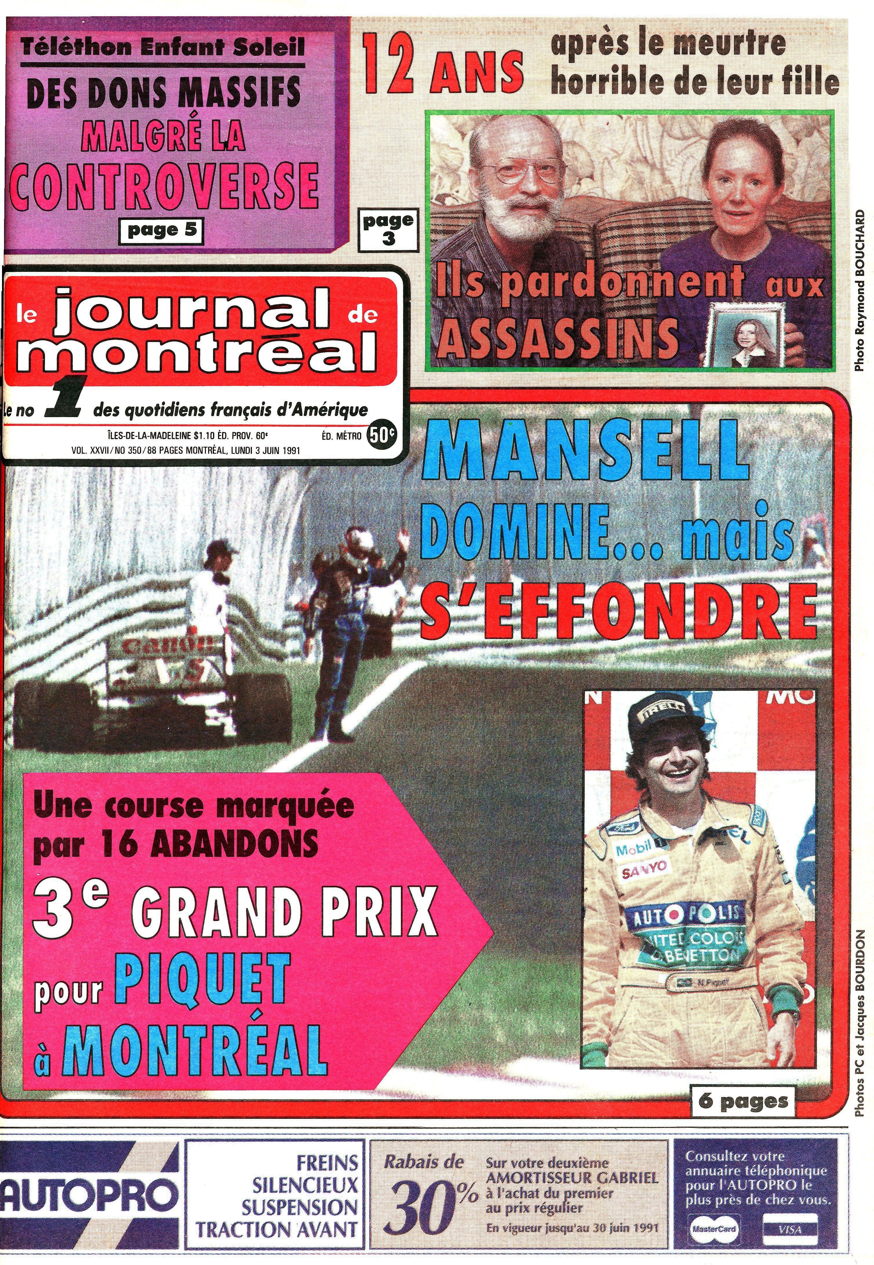 Le Britannique Nigel Mansell avait impressionné les spectateurs du Grand Prix du Canada en 1991. Le pilote avait dominé ses adversaires pendant les 68 premiers tours de la course. Or une erreur de débutant lui a coûté la victoire.