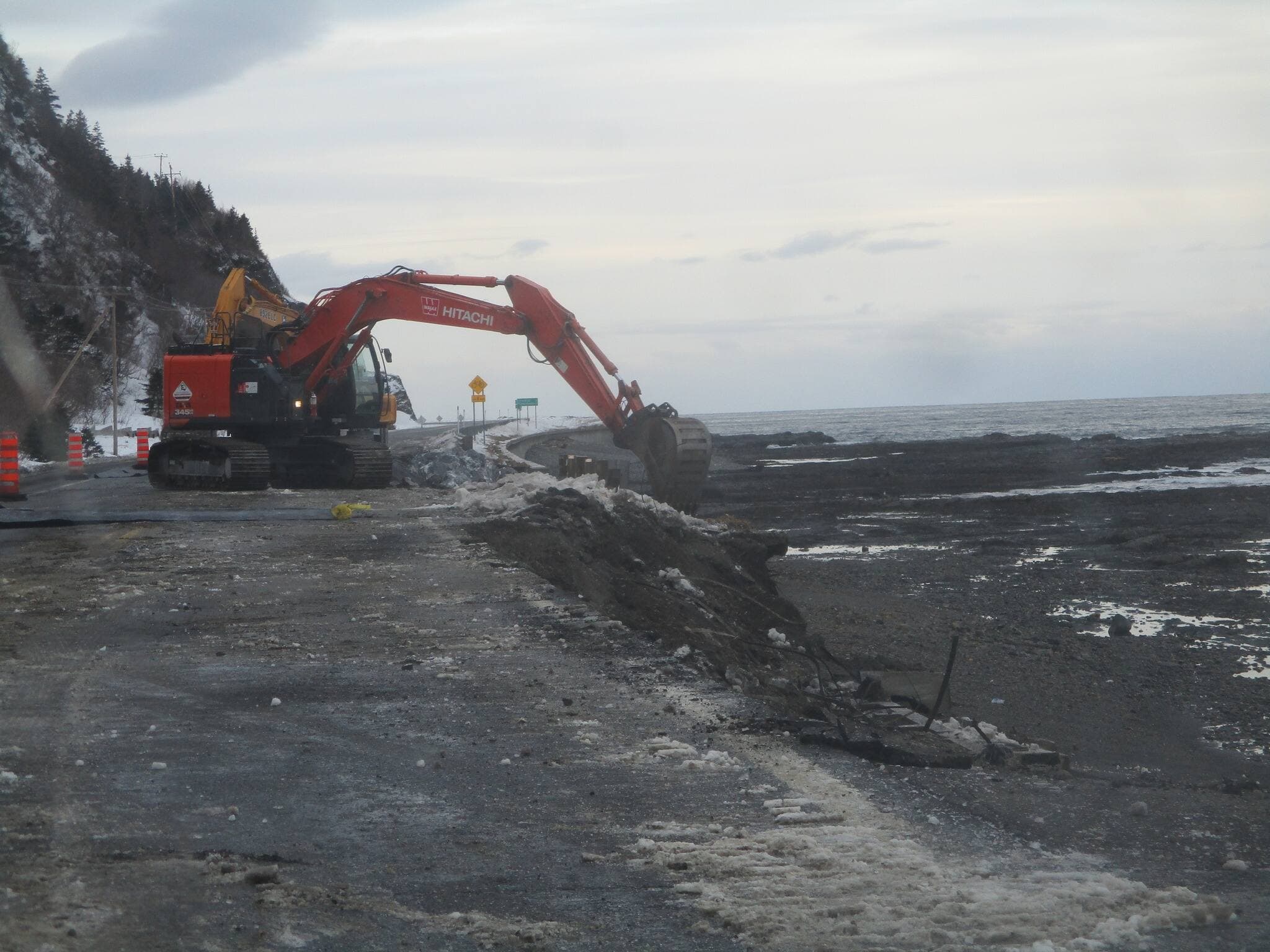 La route 132 en Haute-Gaspésie a été particulièrement endommagée par les fortes vagues et le vent, poussant le ministère des Transports (MTQ) à effectuer des travaux d’urgence.