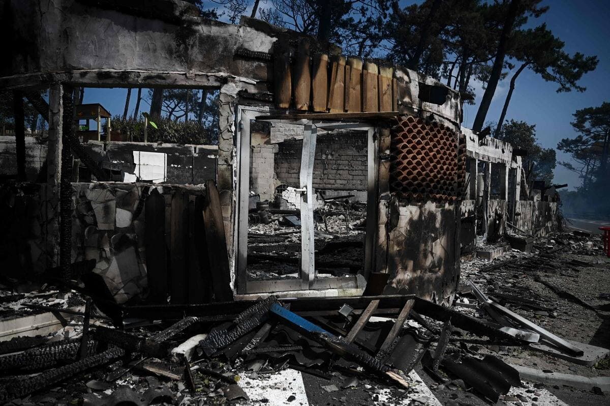 À l'entrée du camping des Flots Bleus, la silhouette du plus célèbre campeur de France, Patrick Chirac, est encore debout. Mais plus loin, c'est la désolation: bungalows effondrés, tôles fumantes et pins calcinés, laissés par l'incendie qui a dévoré 6500 hectares dans la forêt de La Teste-de-Buch (près d'Arcachon sur le littoral du sud-ouest de la France).