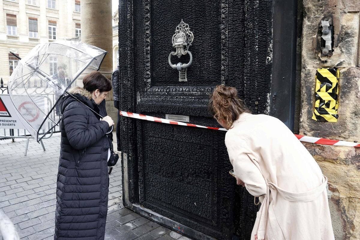 Téléphone à la main, ils prennent en photo la porte noircie de la mairie de Bordeaux, incendiée jeudi soir : la plupart des passants sont choqués, même si beaucoup disent comprendre la colère qui monte contre la réforme des retraites.
