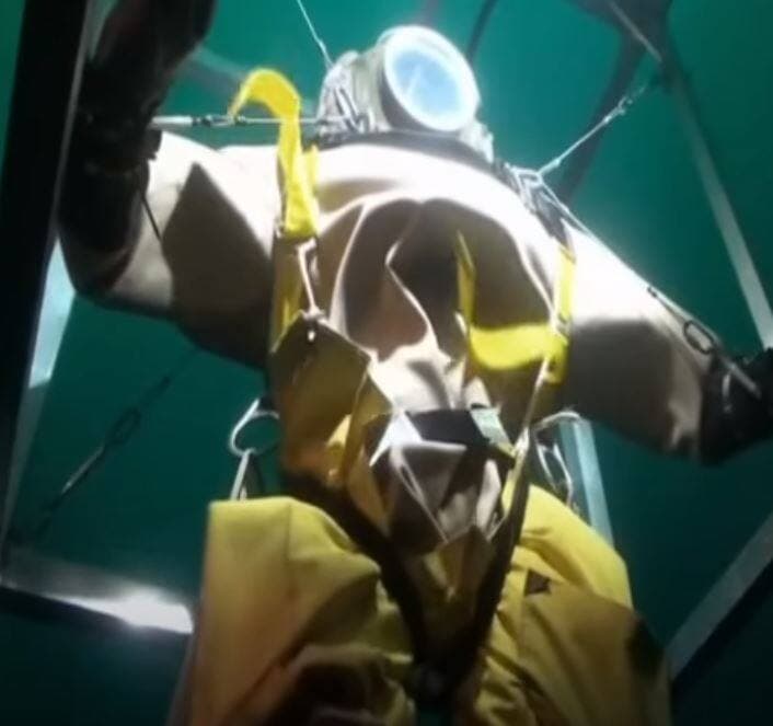Il a ensuite été immergé à environ 300 pieds sous l'eau, où la pression est neuf fois plus élevée qu’au niveau de la mer, et son scaphandre a été dépressurisé.