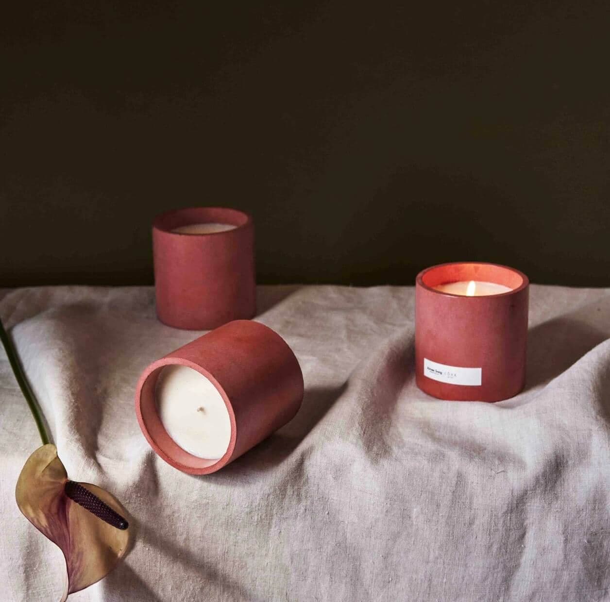 7. Bougie parfumée artisanale dans un récipient en ciment par Project Coax