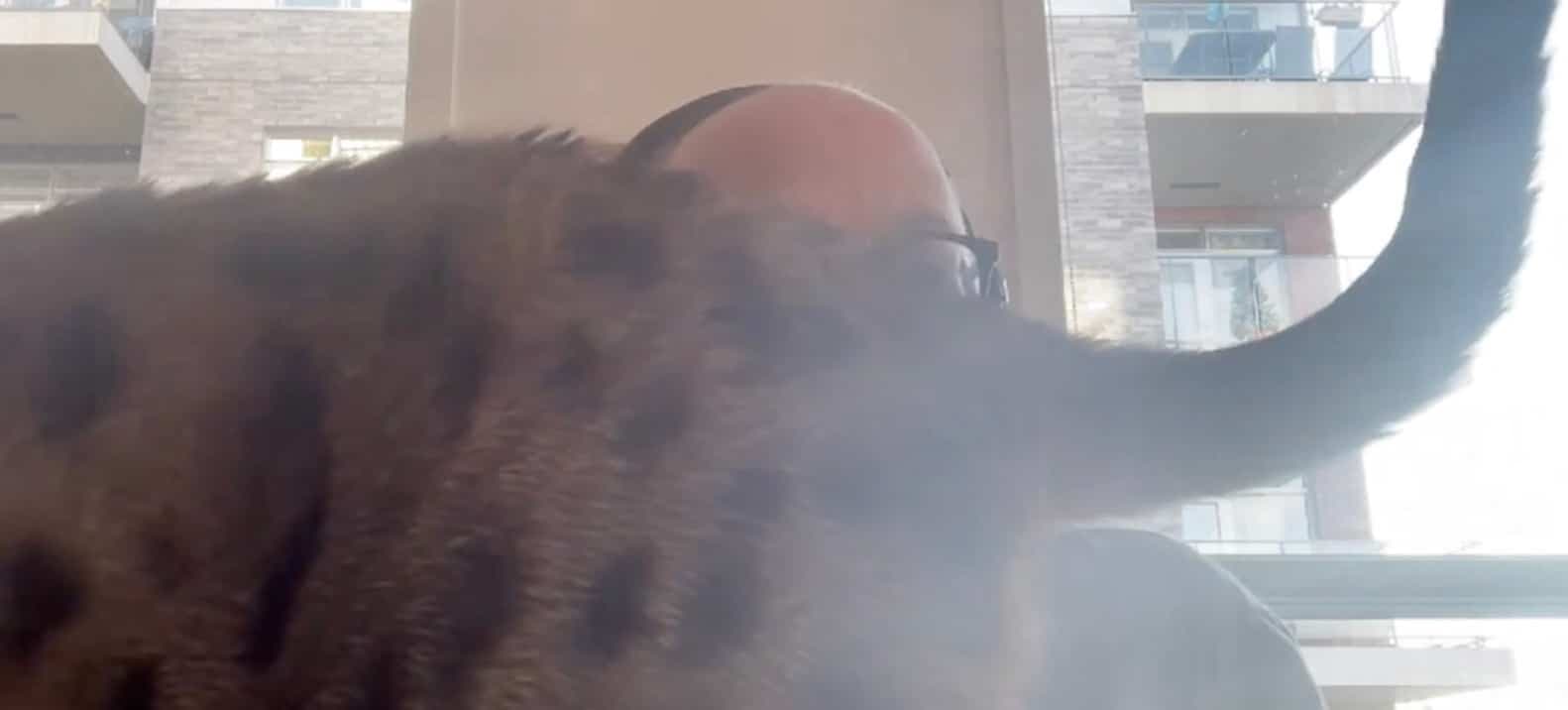 Puis, lors de la huitième minute de cette conversation importante, n’en pouvant sûrement plus de ne pas être le centre d’attention, le chat de M. Séguin a fait son entrée en onde.