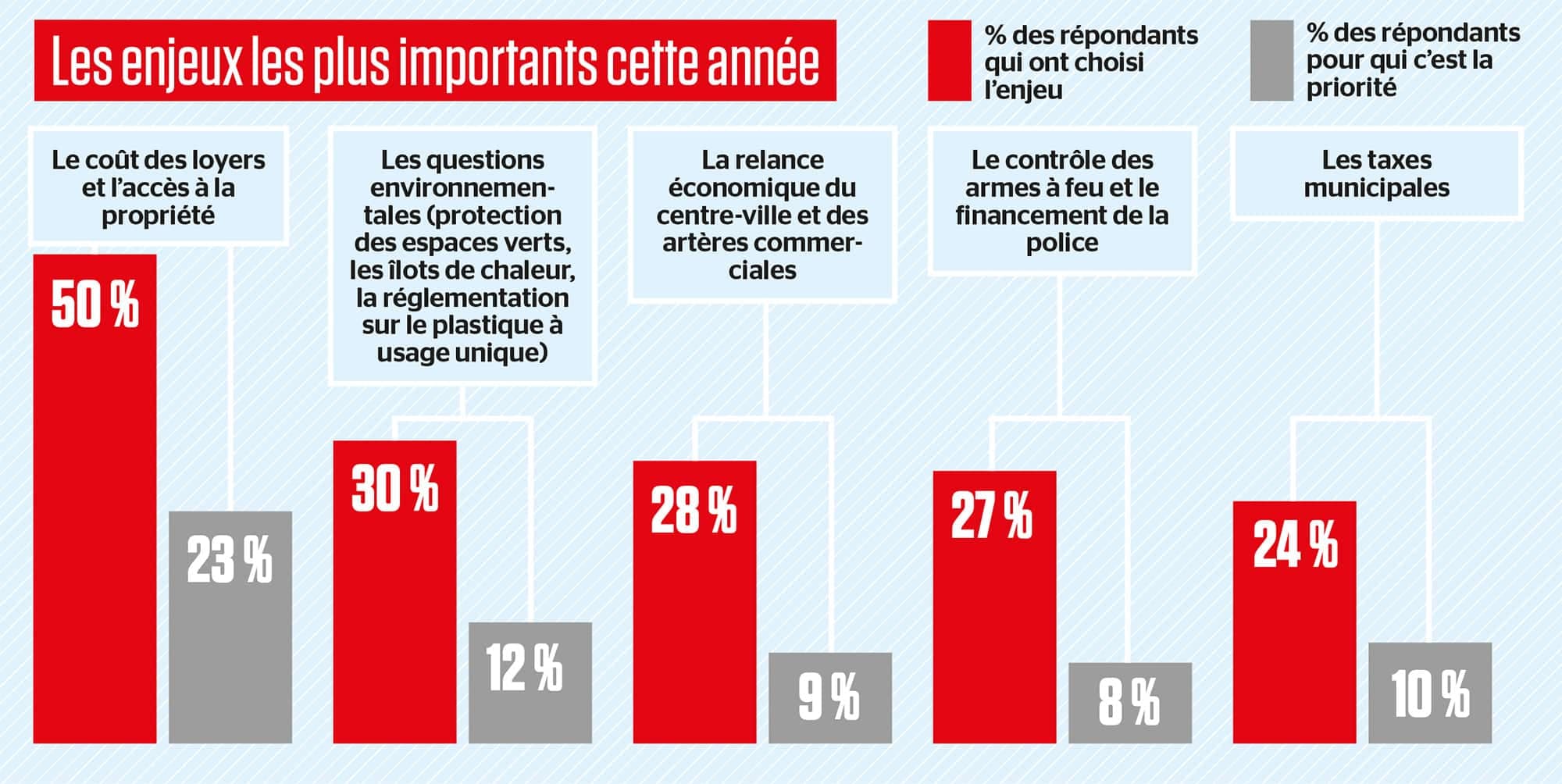 Selon un sondage Léger-Le Journal-Montreal Gazette, les deux principaux prétendants à la mairie de Montréal sont encore à égalité avec chacun 36 % des intentions de vote, suivis de Balarama Holness qui en obtient 12 %.