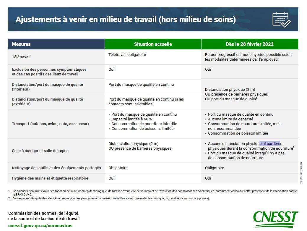 La CNESST a annoncé mercredi plusieurs ajustements aux mesures sanitaires dans les milieux de travail dans l’actuel contexte de déconfinement.