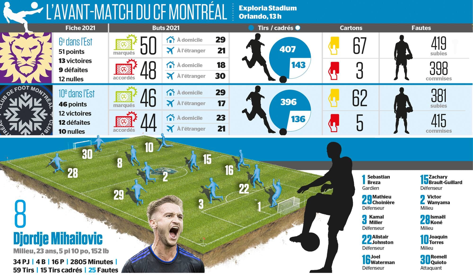 Le Bleu, blanc et noir visite l’Orlando City SC, cette même équipe qui avait annihilé tout espoir de séries éliminatoires en l’emportant 2 à 0 au Stade Saputo au dernier match de la saison 2021.