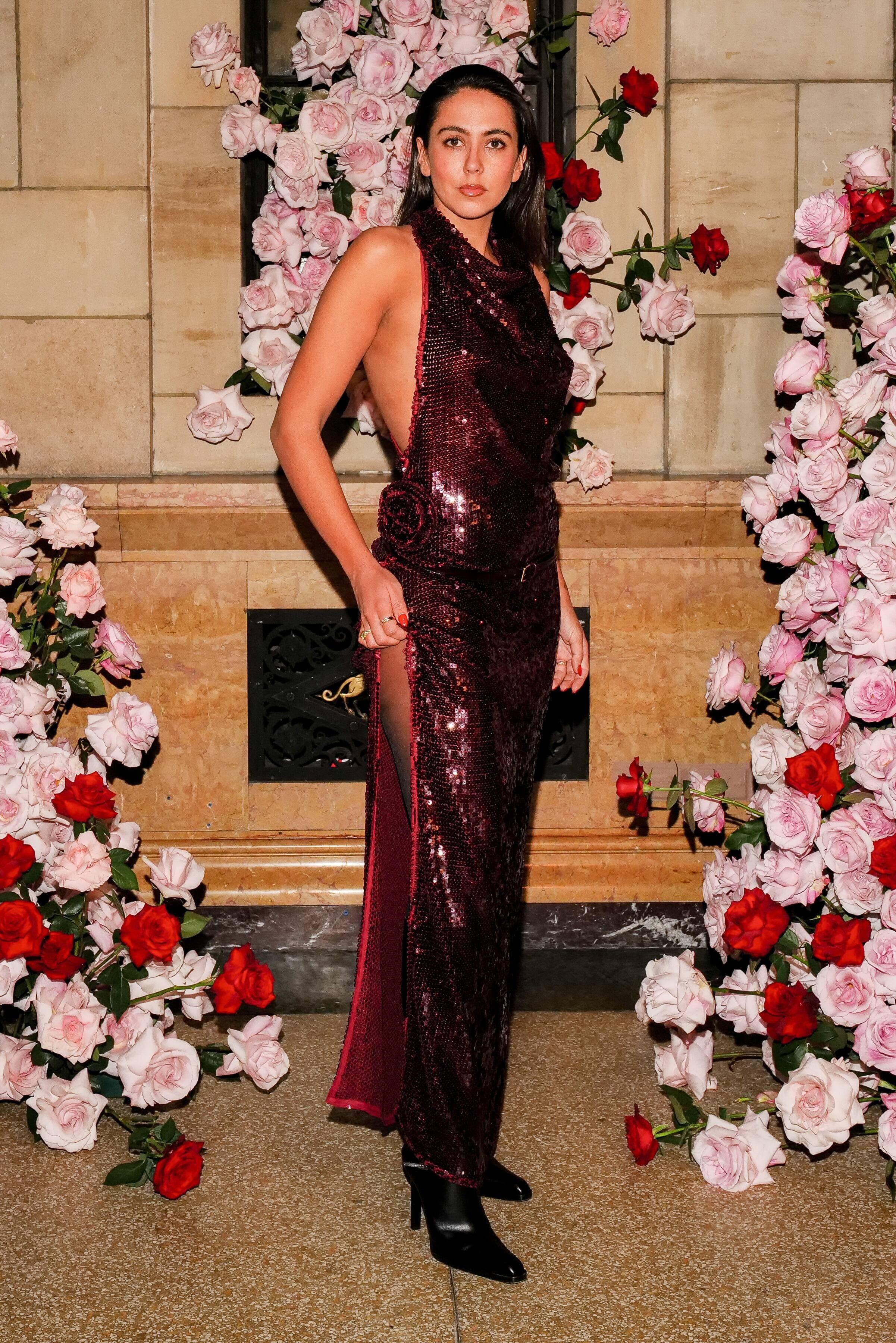 Nos looks coups de cœur? Valentina Sampaio, qui porte le majestueux trench en cuir bordeaux, pièce phare de la collection; Iris Law, dans la robe midi rouge ornée de fleurs au niveau du buste; Nara Smith, dans la robe courte volantée qui évoque un bouquet de roses; et enfin, Irina Shayk, qui a misé sur un élégant blazer noir structuré avec la casquette au foulard intégré. Le look de Chloë Sevigny, qui s'anime autour de la robe ajustée à l'effigie de l'imprimé de roses, a lui aussi fait tourner les têtes.
