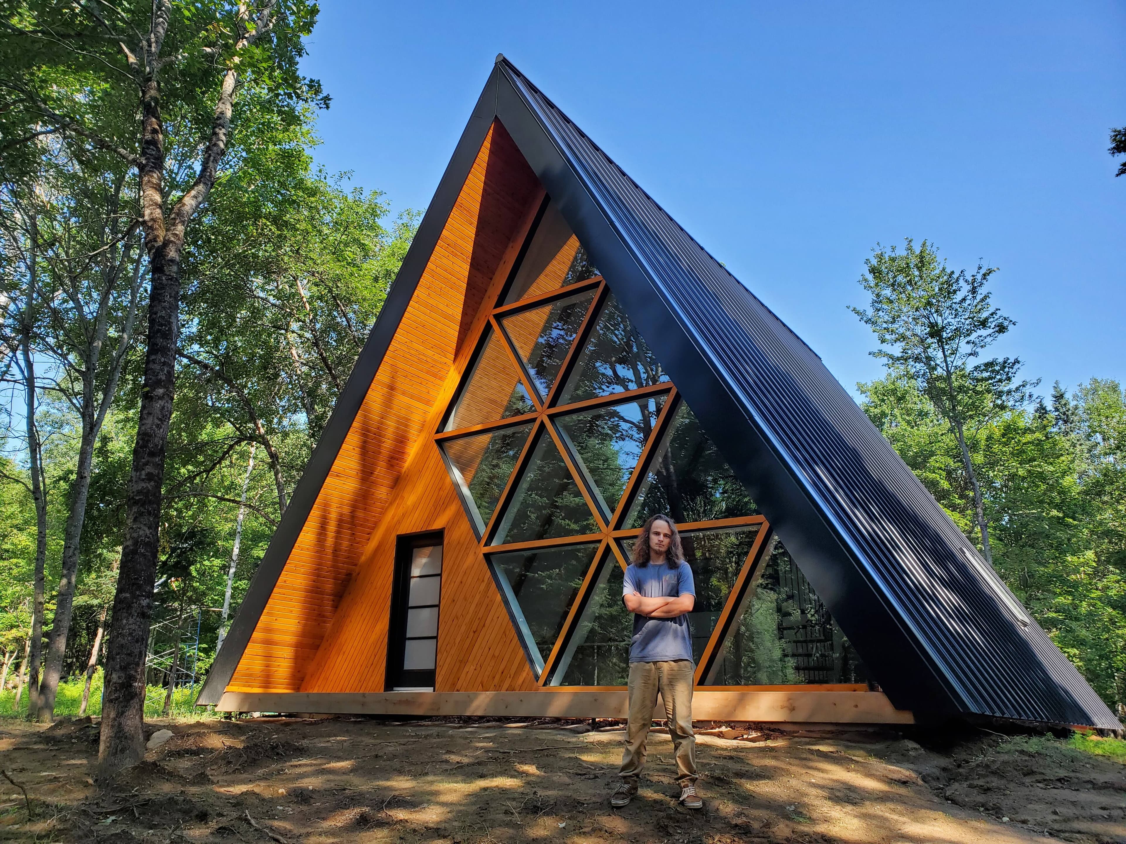 À l’été 2022, Isaac Roy a construit sa première maison dans la municipalité de Saint-Damien, dans Lanaudière. Il y habite maintenant depuis plus de six mois. Son énergie provient d’une génératrice et de deux panneaux solaires, ce qui lui coûte plus cher que s'il était desservi par Hydro-Québec.
