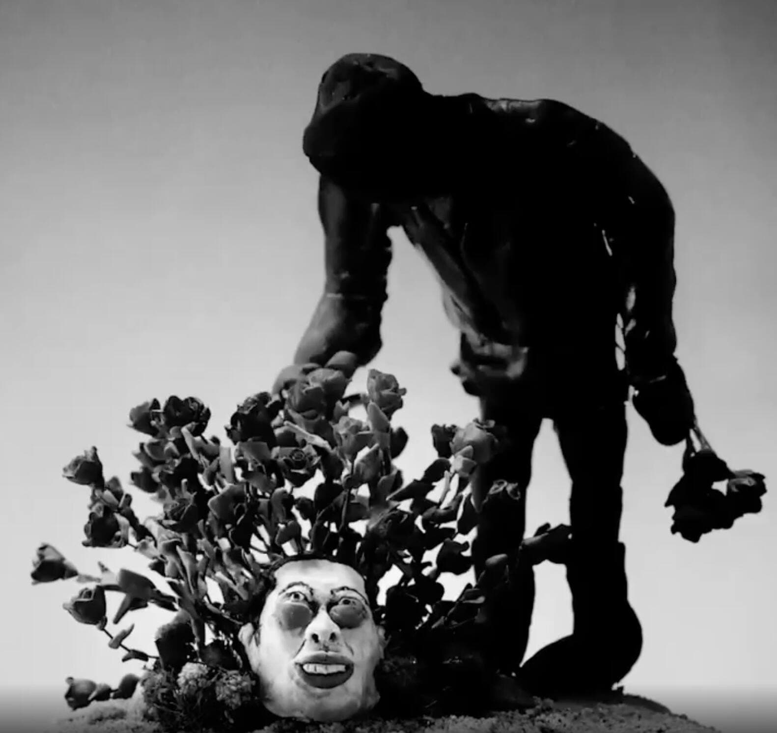 Il termine la troublante vidéo en arrosant la tête de Davidson pour y récolter des roses, qu’il met ensuite dans le fameux camion qu’il a offert à Kim pour la St-Valentin.