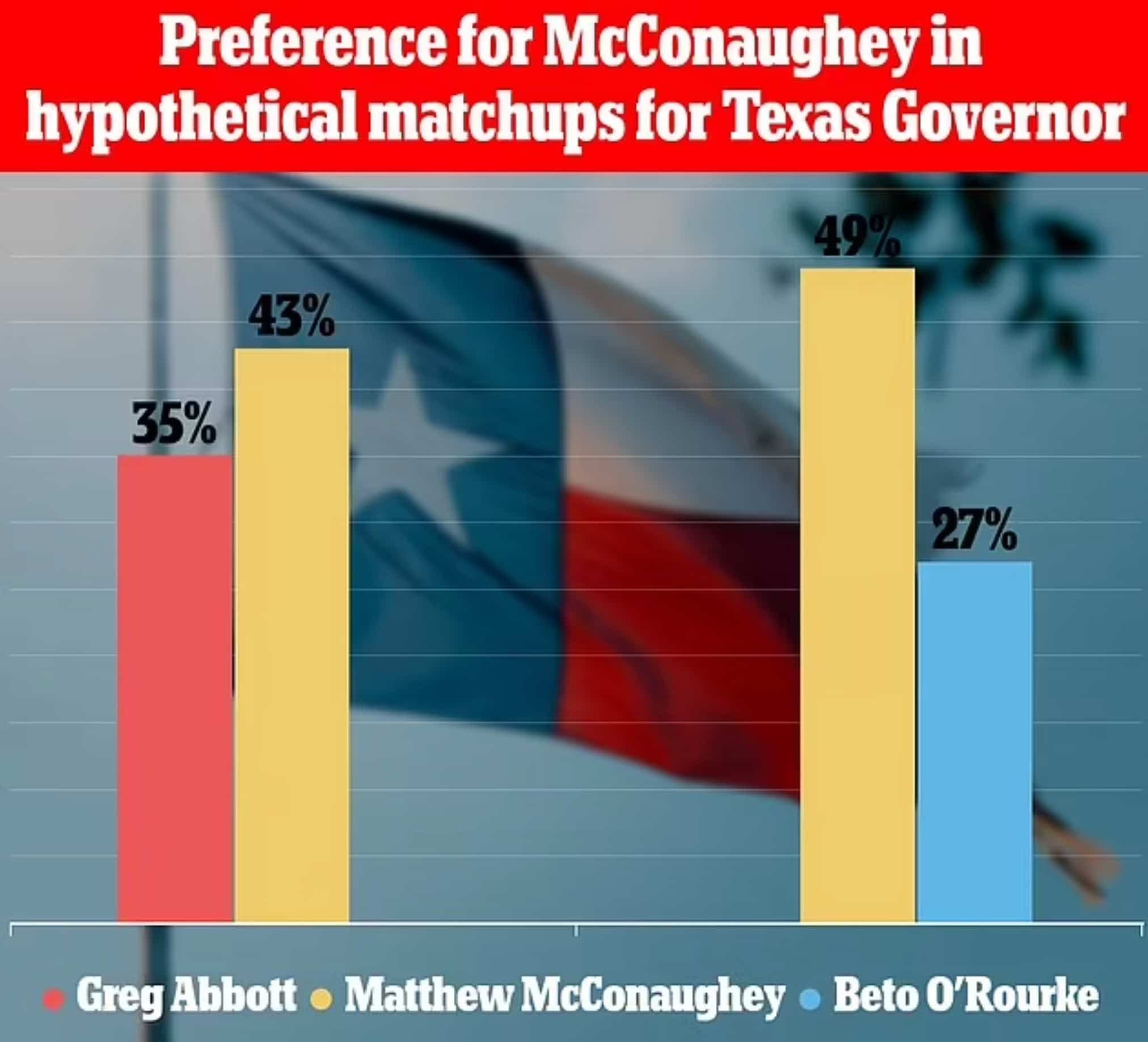 Le sondage confirme que si les candidats étaient nez à nez dans la compétition, McConaughey l’emporterait par plus de 10 % de votes face à ses compétiteurs.