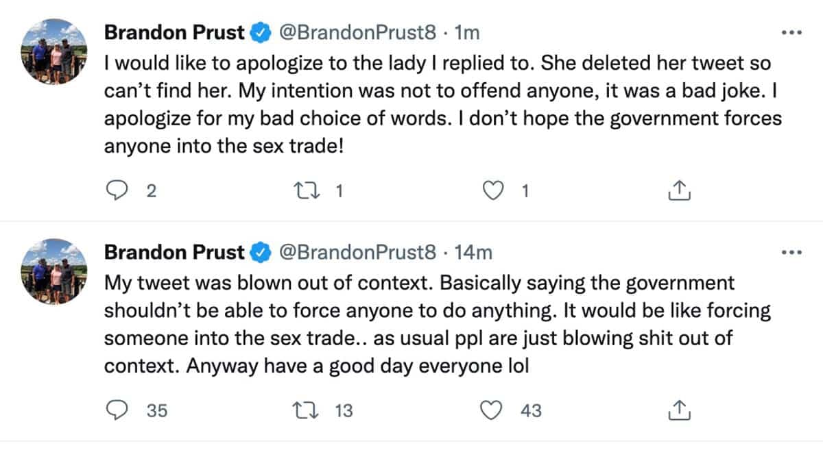 Le tweet de Prust a évidemment fait réagir. Un jour plus tard, il a mentionné que sa publication avait été prise hors contexte.