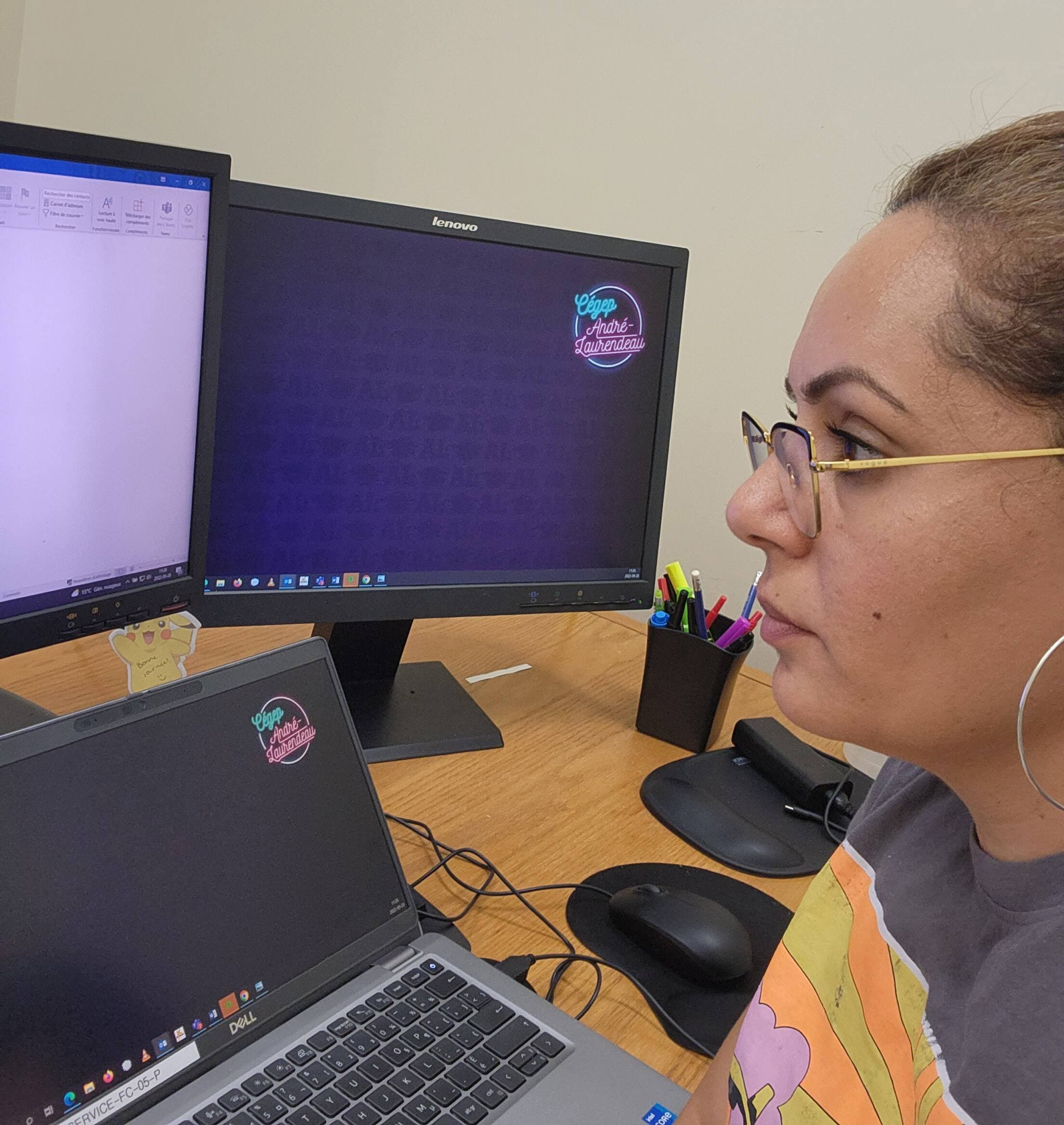 En 2021, à l’âge de 39 ans, elle a fait le grand saut et elle est retournée sur les bancs d’école, après 15 ans d’absence. Elle a décidé alors d’entamer l'Attestation d’études collégiales (AEC): Bureautique – Agent(e) d’administration. D’une durée de 12 mois, le programme forme à terme des personnes aptes à planifier, à organiser et à assurer le suivi de l’ensemble des activités administratives sous leur responsabilité.